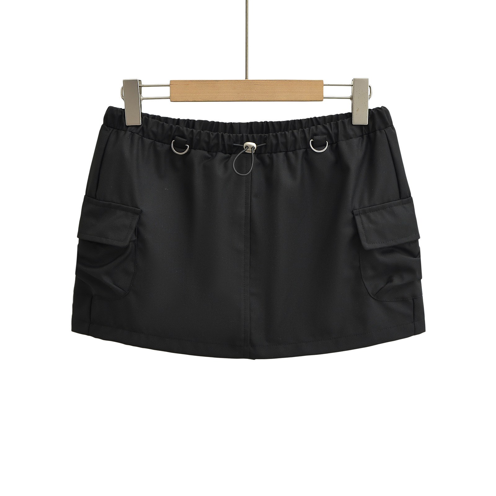 24069-24 여름 새로운 미국 스파이스 소녀 섹시한 낮은 허리 작업복 스커트 드로스트링 스트레스 허리 버블 백 스커트스토어 가기