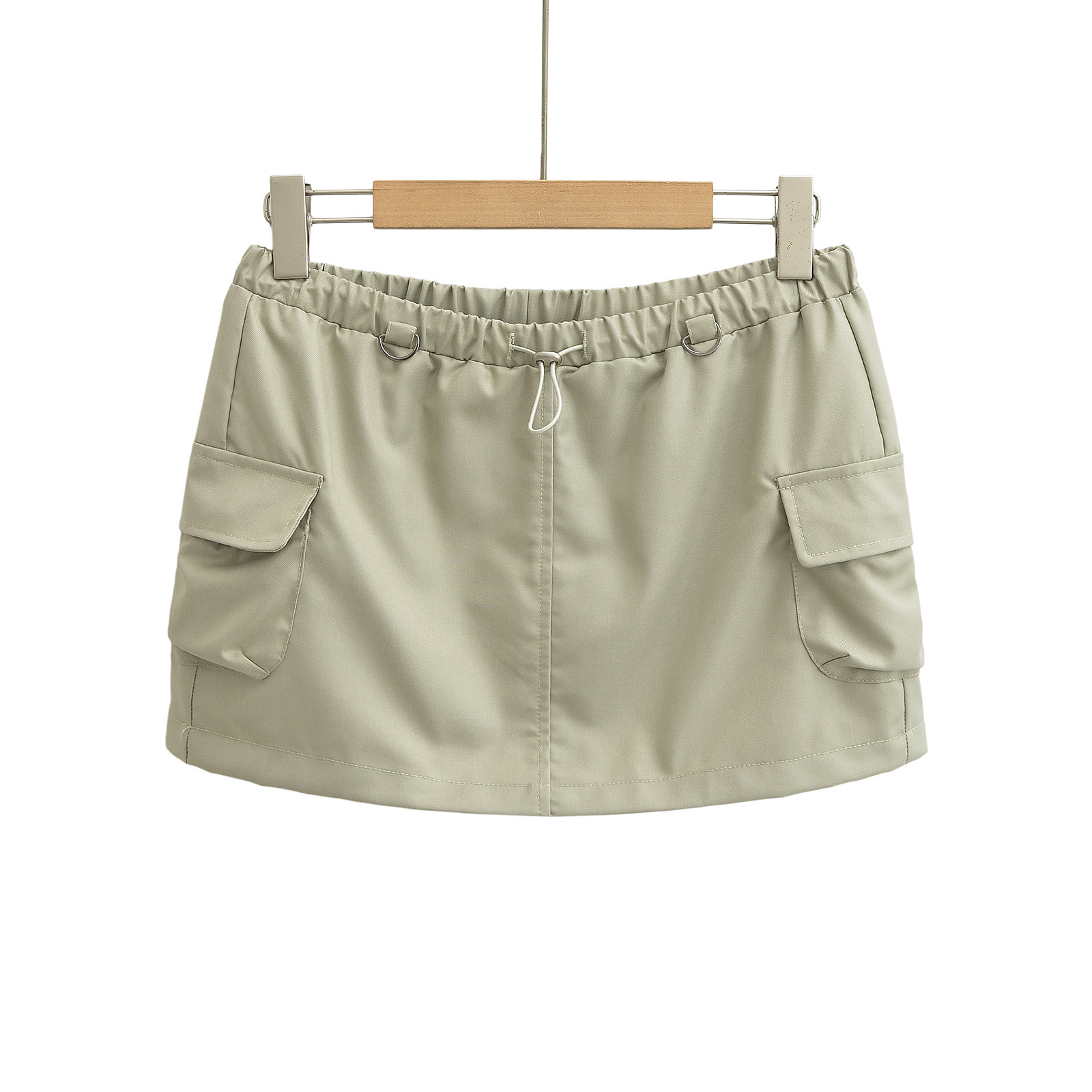 24069-24 여름 새로운 미국 스파이스 소녀 섹시한 낮은 허리 작업복 스커트 드로스트링 스트레스 허리 버블 백 스커트