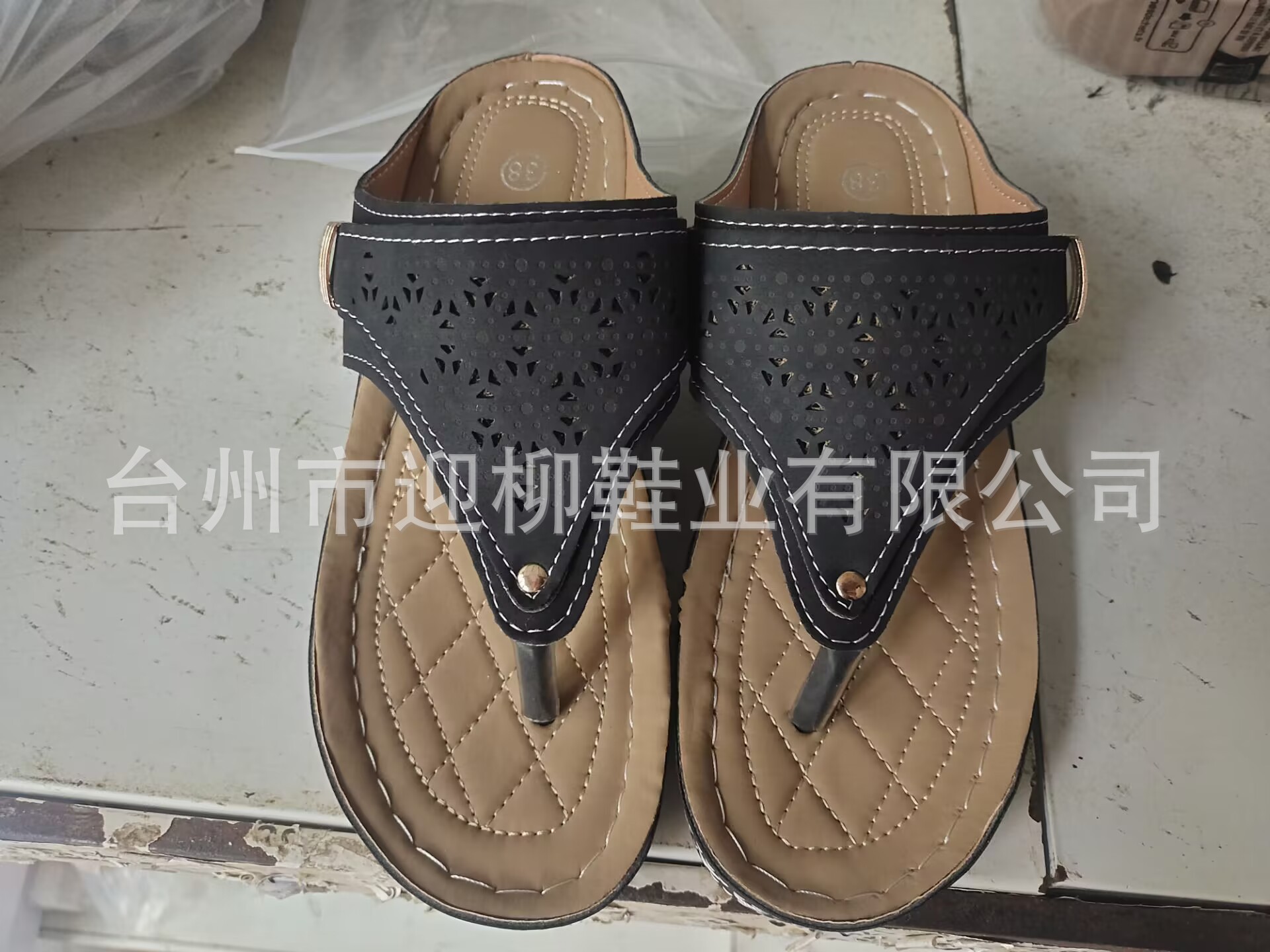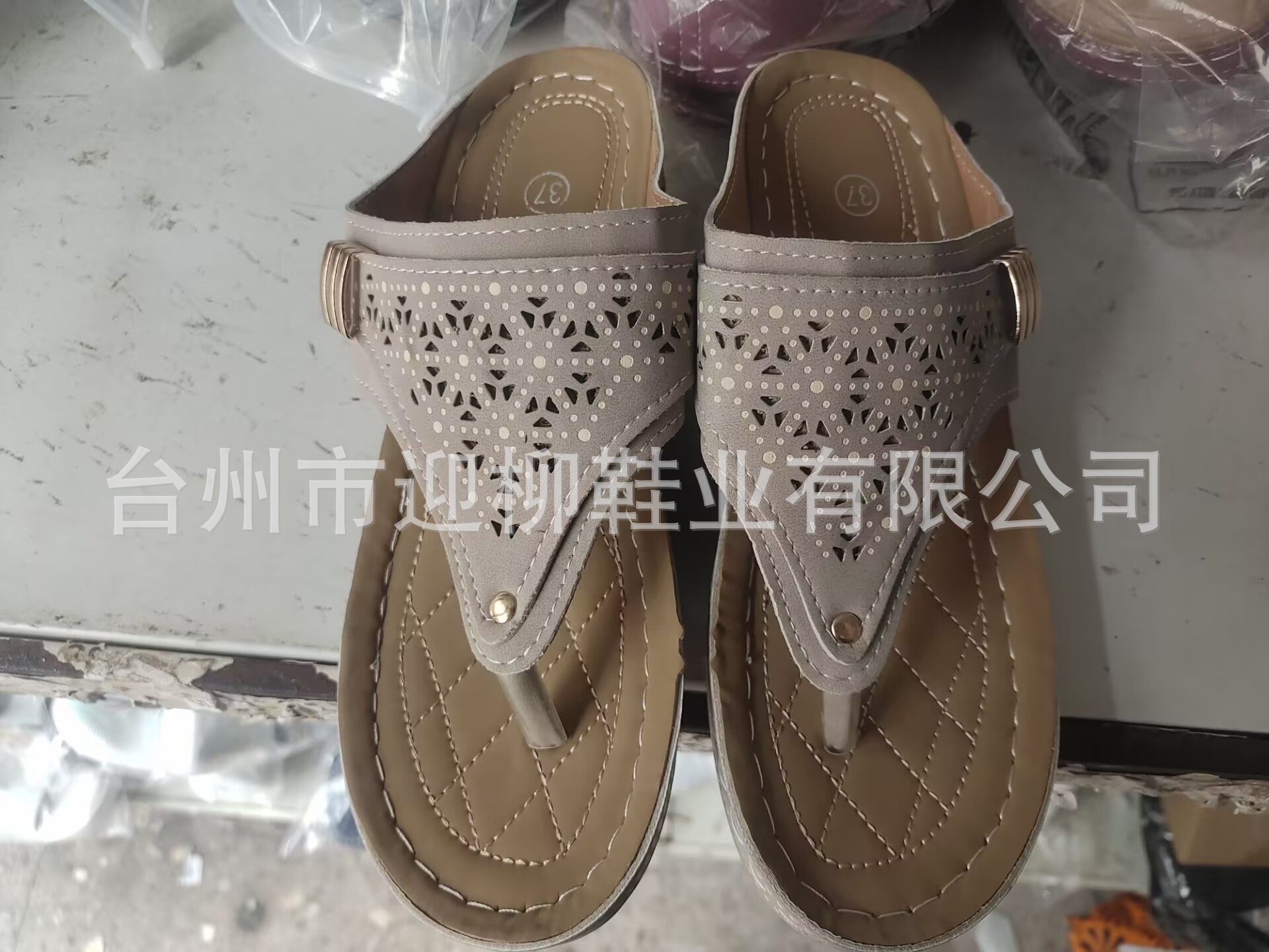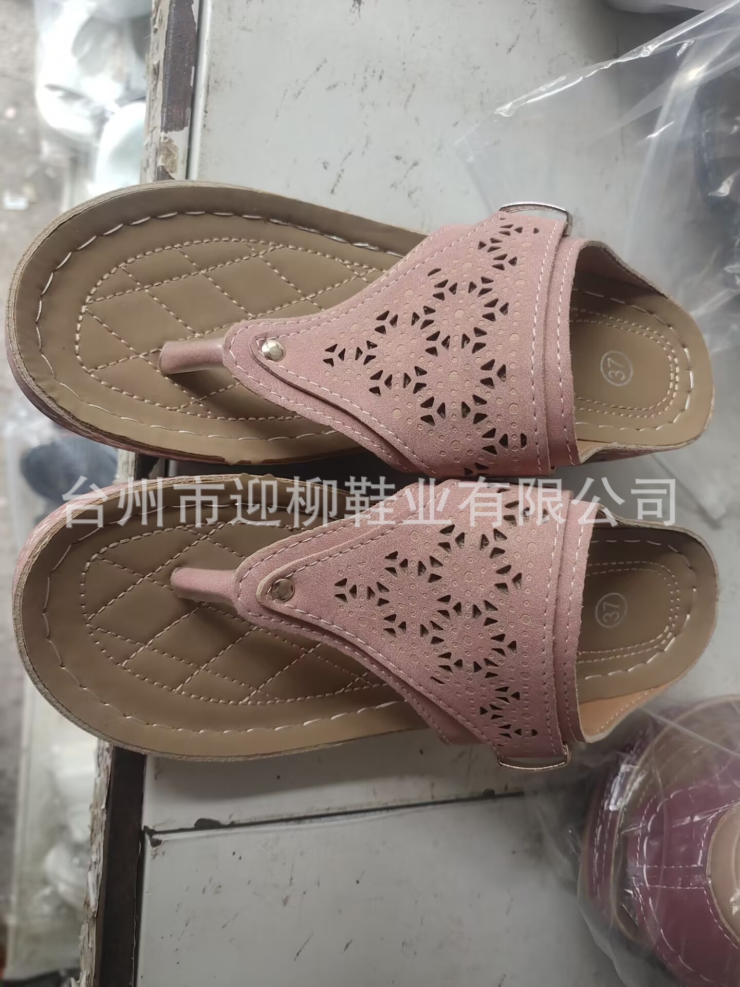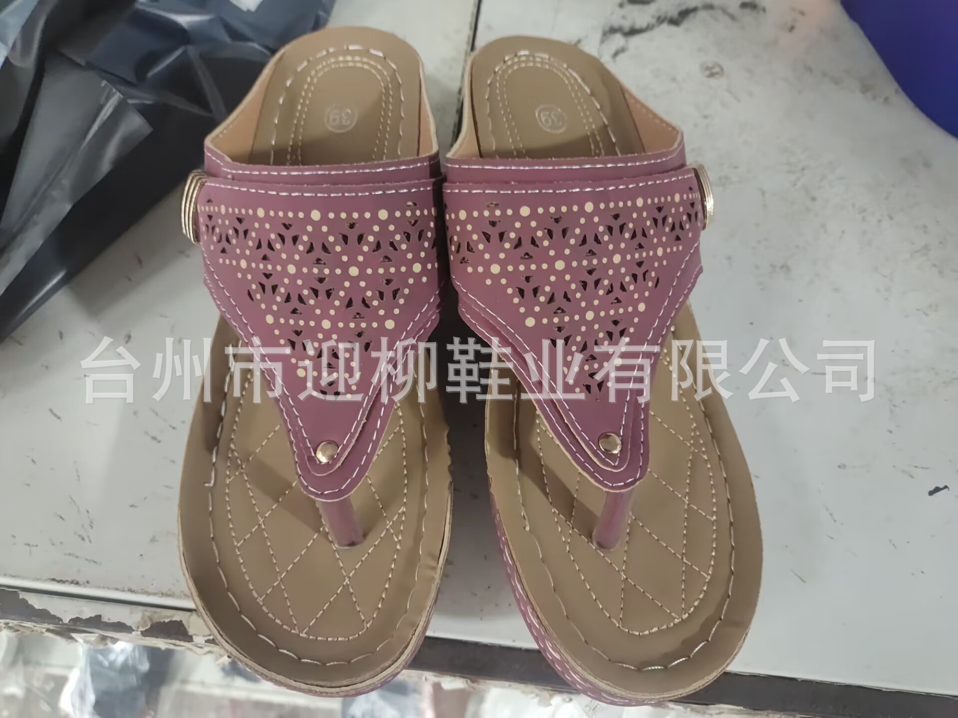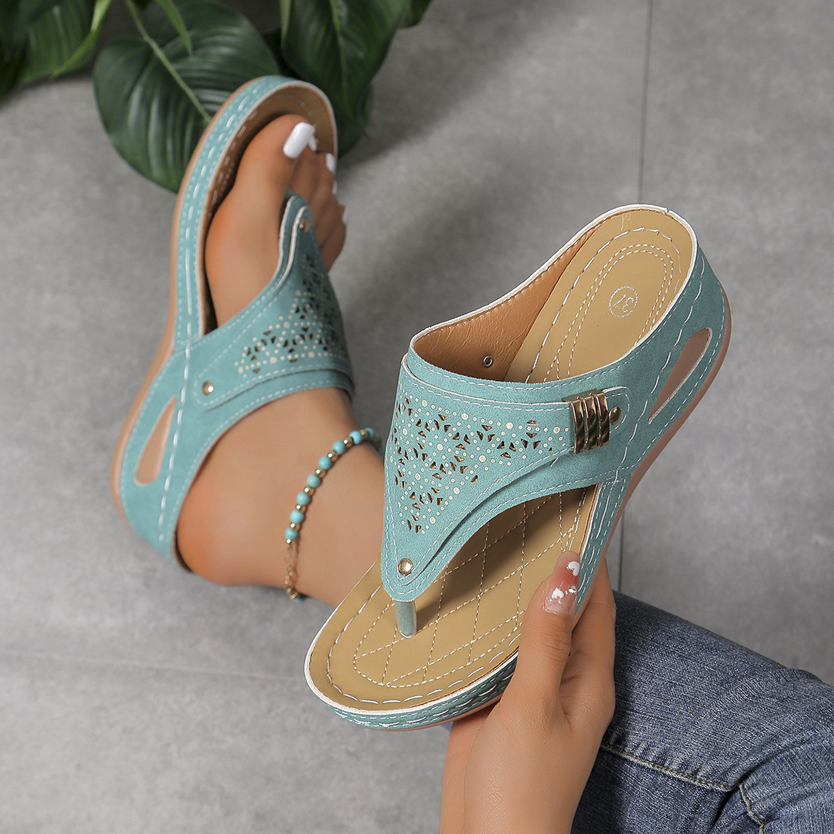 플립 온 샌들과 슬리퍼 여성 2023 여름 새로운 유럽과 미국의 대외 무역 플러스 사이즈 중공 금속 두꺼운 밑창 샌들과 슬리퍼 여성 도매스토어 가기