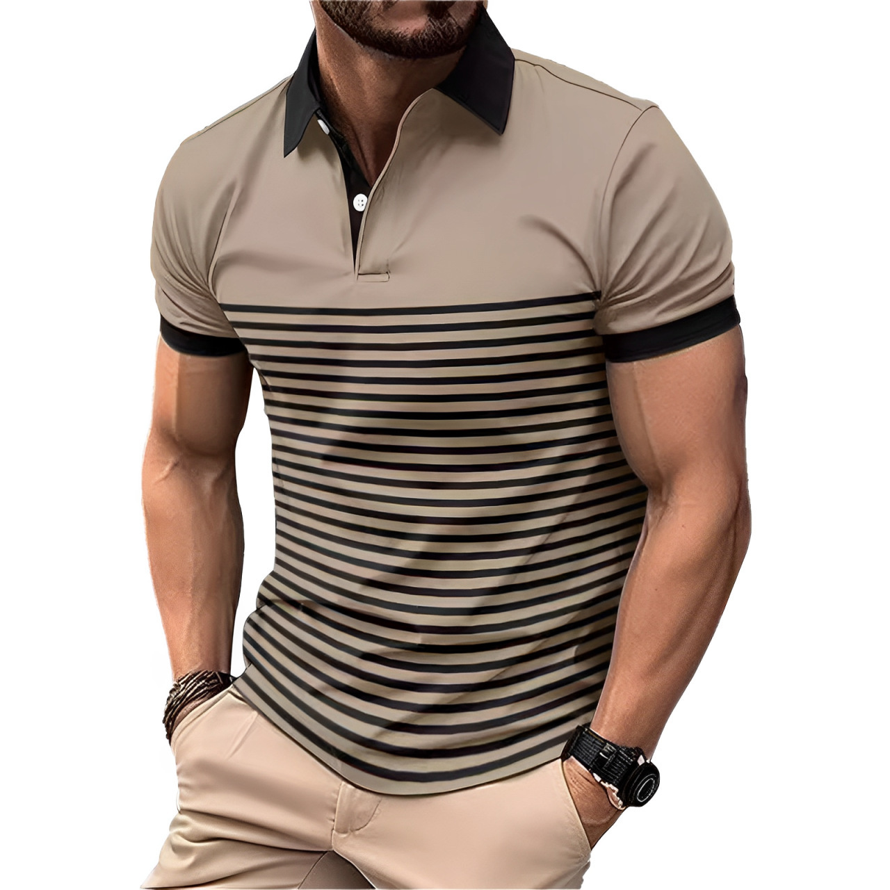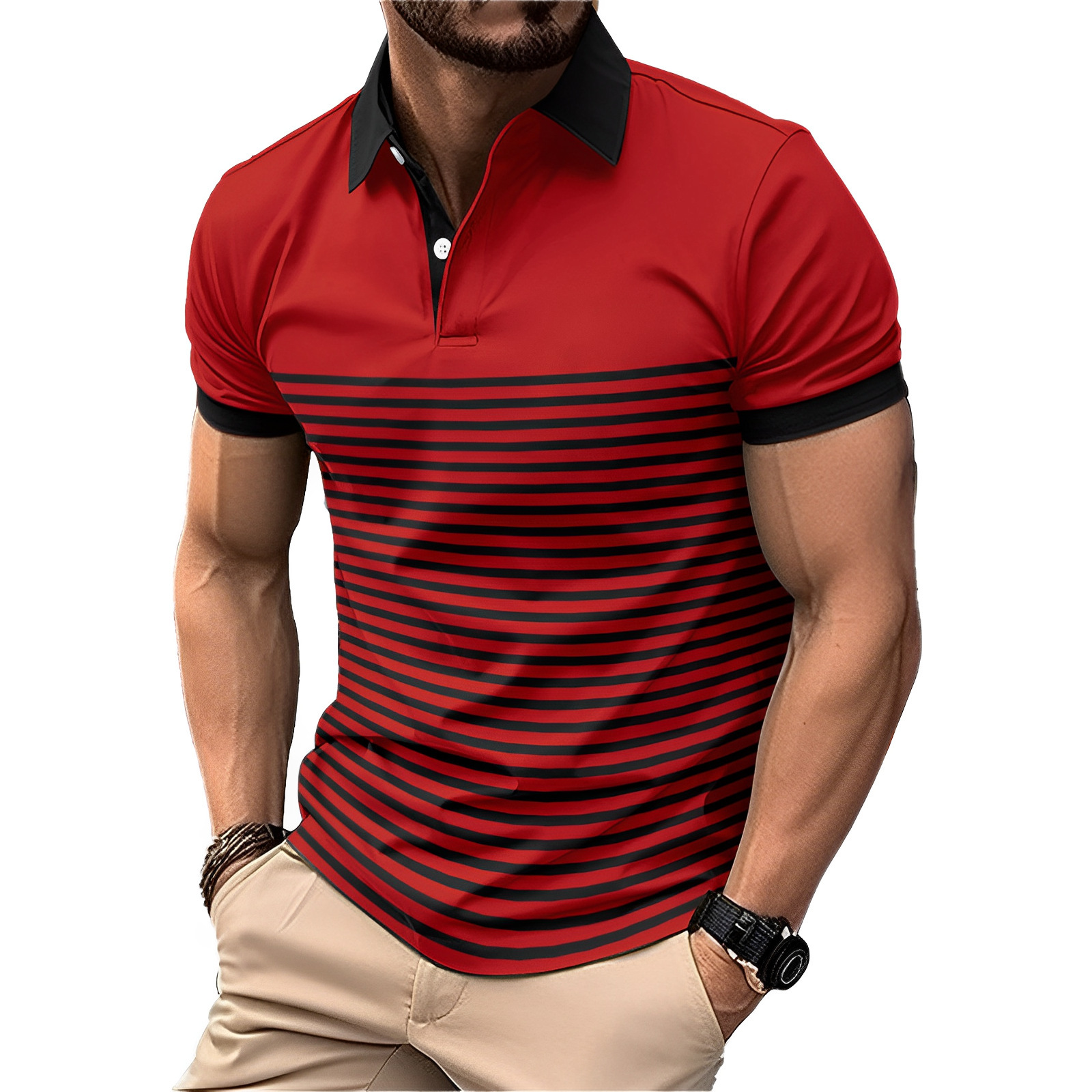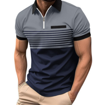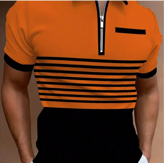 국경 간 무역 2025 봄 남성 인쇄 캐주얼 인기있는 폴리 에스터 반팔 줄무늬 지퍼 폴로 셔츠 티셔츠 남성용