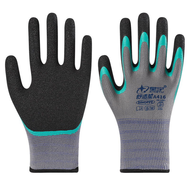 Xingyu A416 편안한 스타 주름 코팅 장갑 미끄럼 방지 및 내구성 더블 레이어 폼 고무 노동 보호 장갑