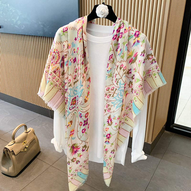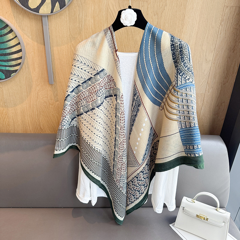 작은 격자 무늬 리넨 스카프 여성 여름 2024 새로운 선 스크린 대형 스퀘어 얇은 실크 스카프 에어컨 외부 목도리