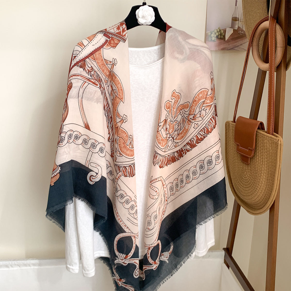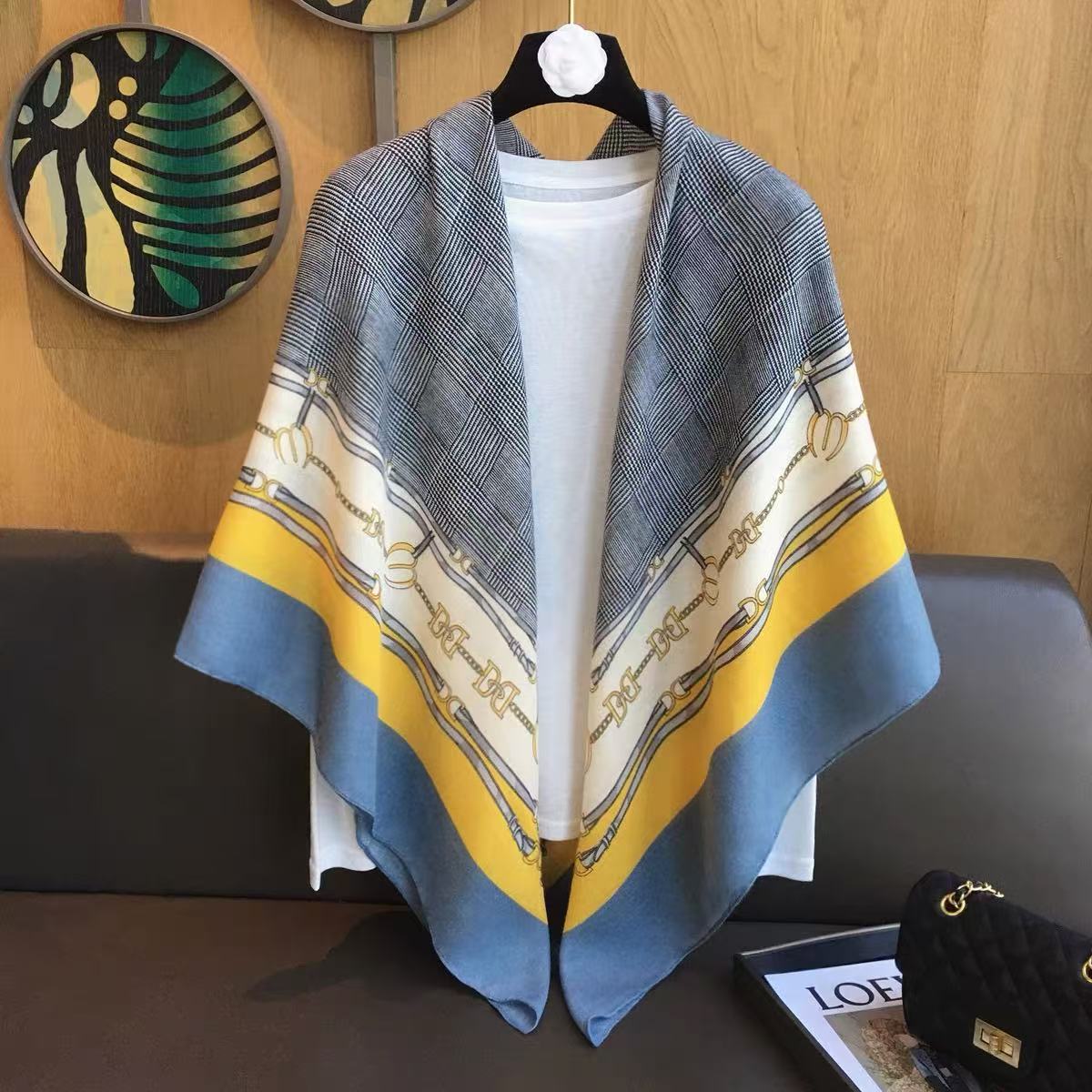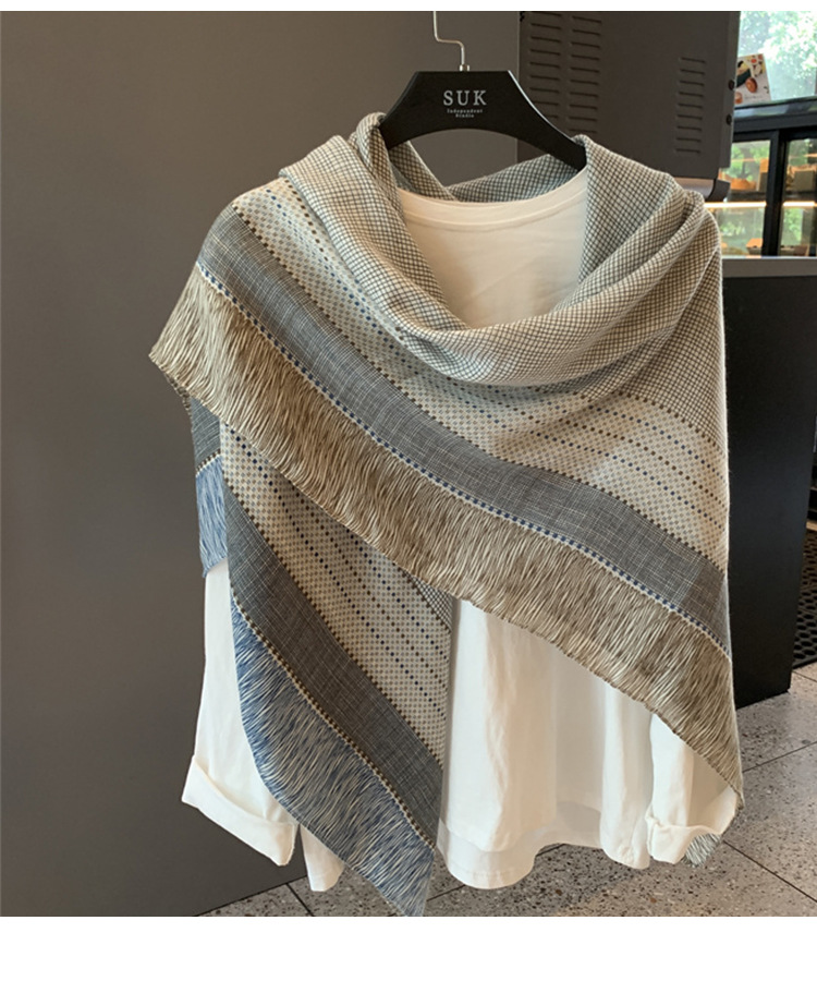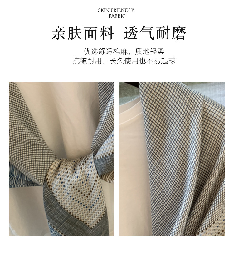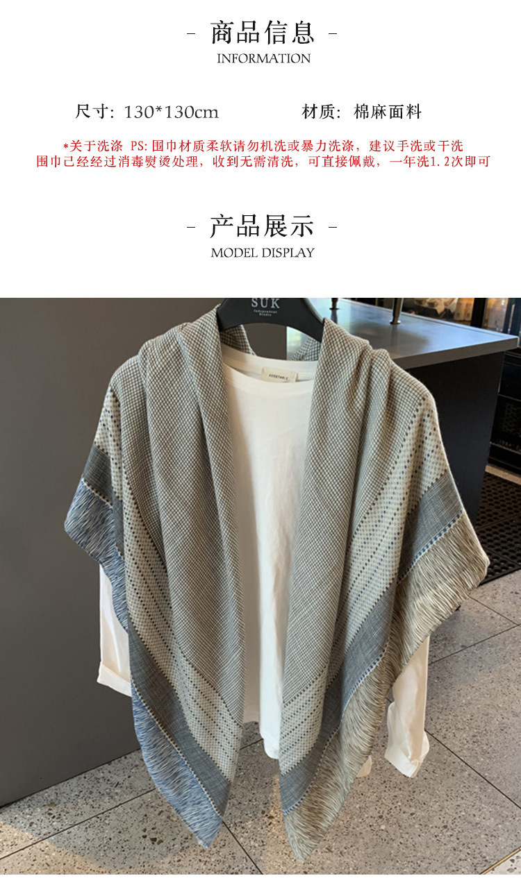 작은 격자 무늬 리넨 스카프 여성 여름 2024 새로운 선 스크린 대형 스퀘어 얇은 실크 스카프 에어컨 외부 목도리스토어 가기