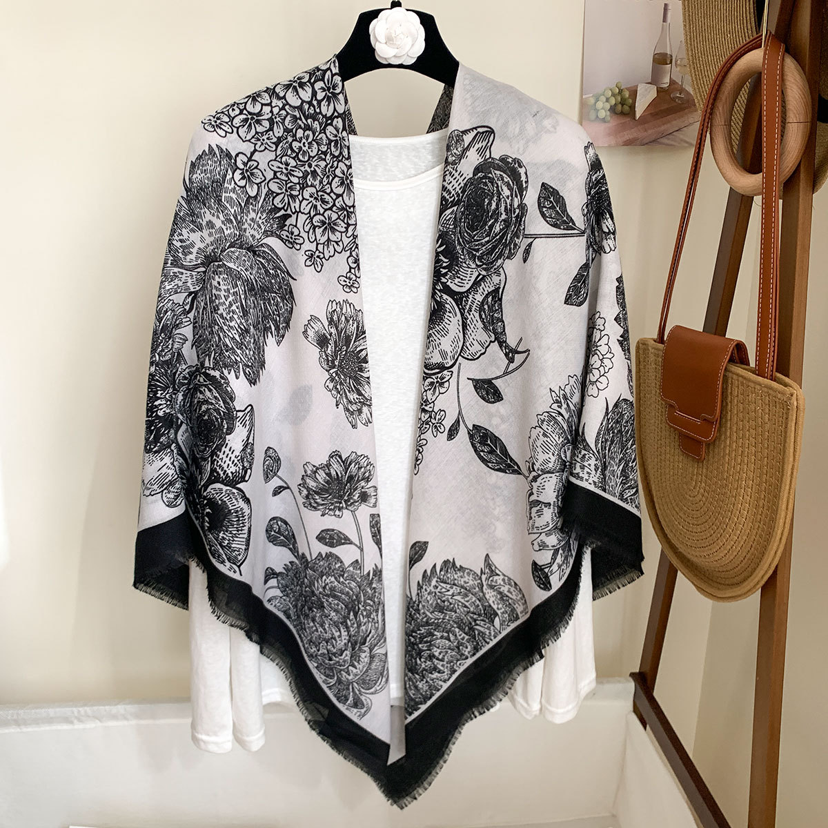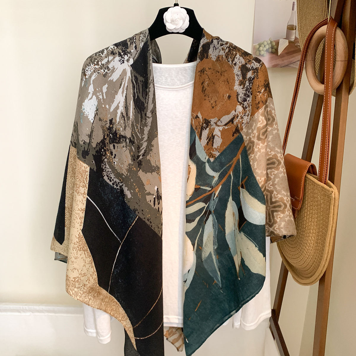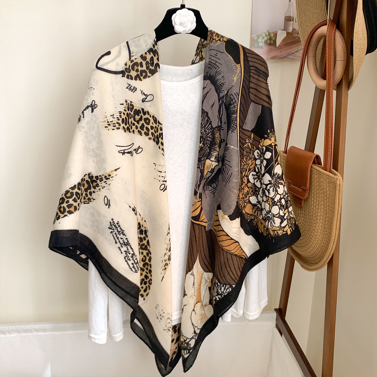 작은 격자 무늬 리넨 스카프 여성 여름 2024 새로운 선 스크린 대형 스퀘어 얇은 실크 스카프 에어컨 외부 목도리스토어 가기