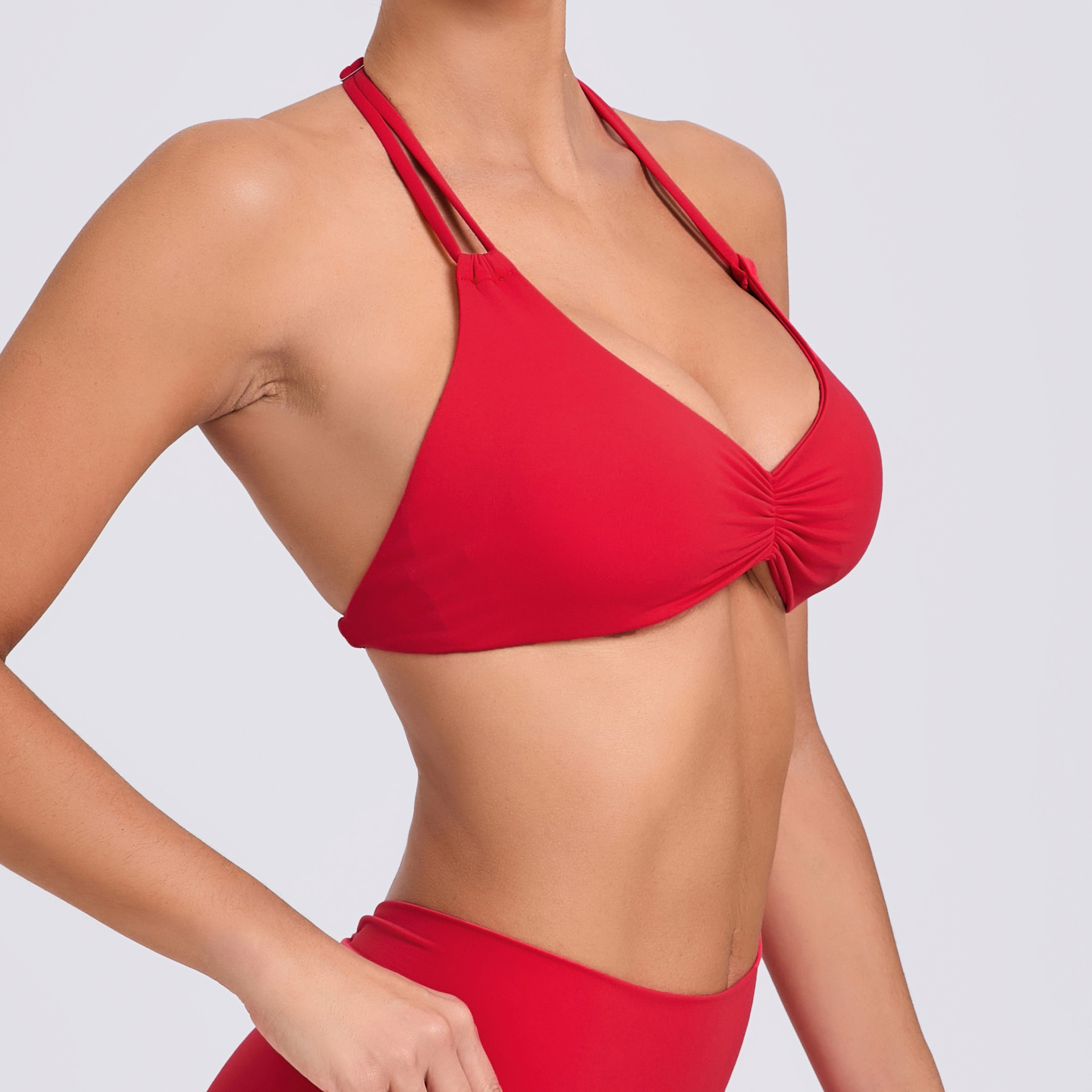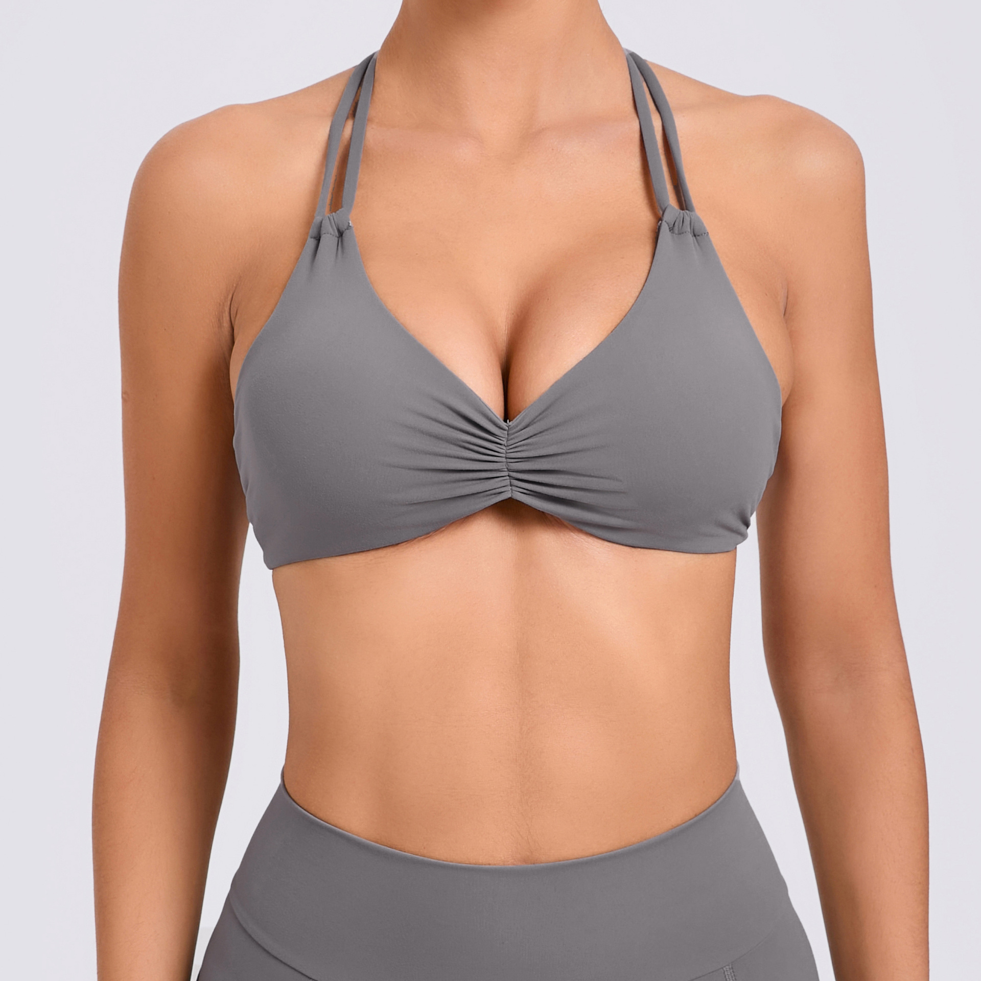 유럽과 미국의 더블 조정 가능한 버클 꽉 매달린 목 리키 백 요가 조끼 여성용 타이트 스포츠 탑 퀵 건조 피트니스 브라