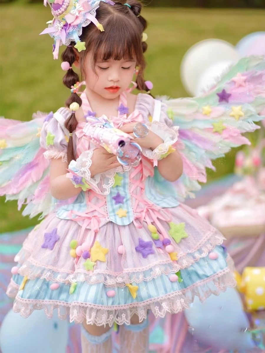 어린이 설탕 매직 로리타 코스 옷 여름 도파민 착용 원피스 소녀의 두 번째 공주 원피스