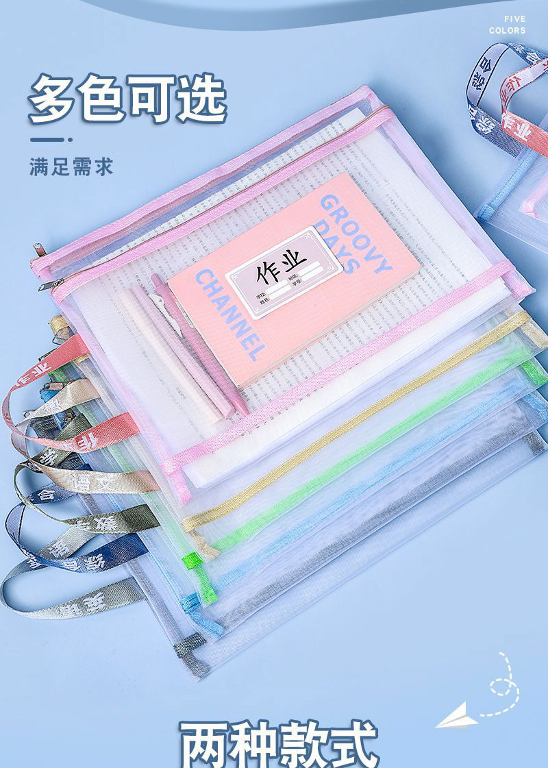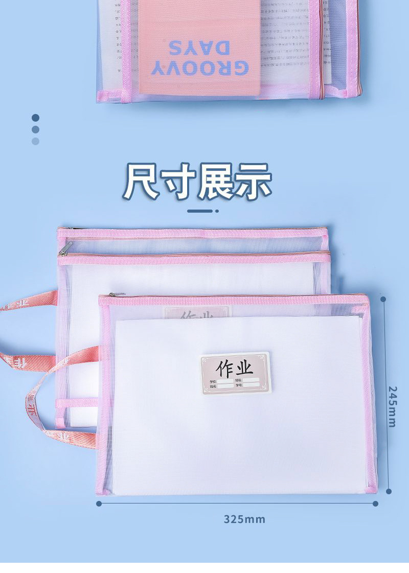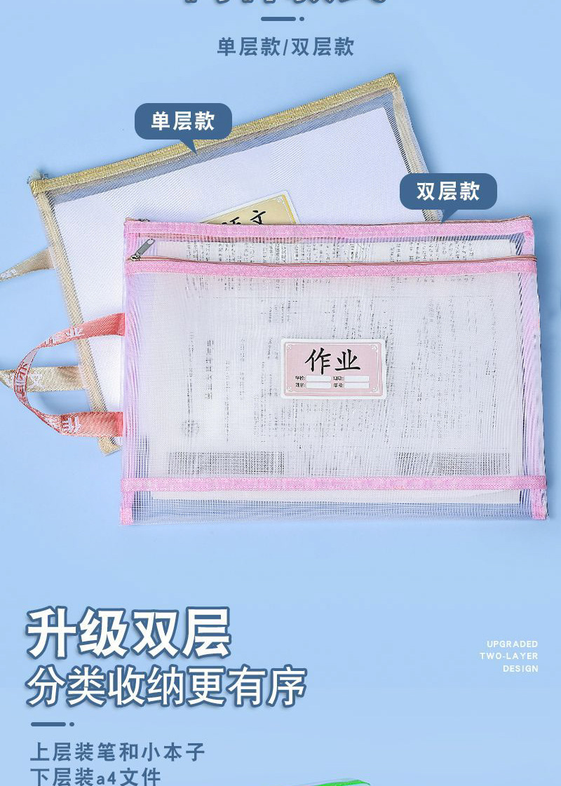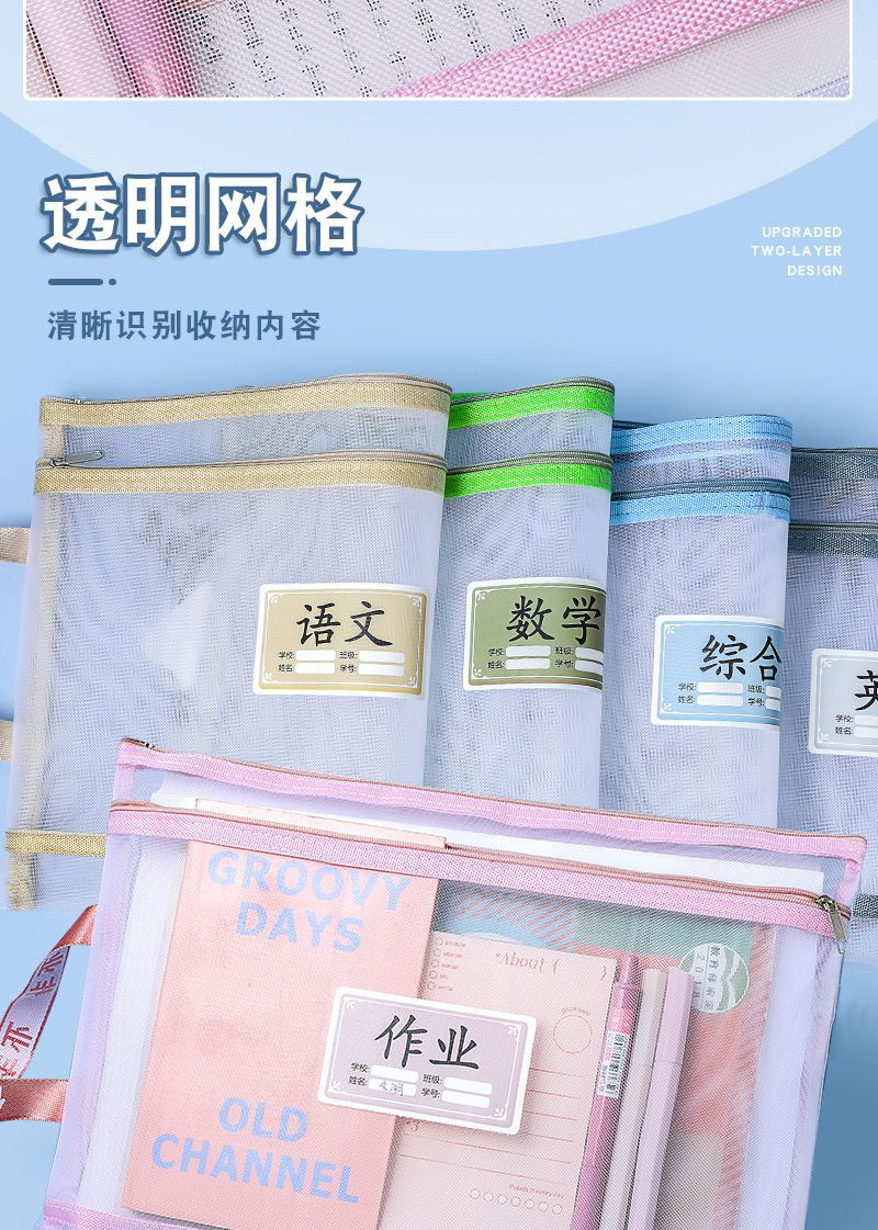 A4 과목 가방 휴대용 문서 가방 이중층 대용량 투명 메쉬 숙제 시험지 과목 분류 보관 가방스토어 가기