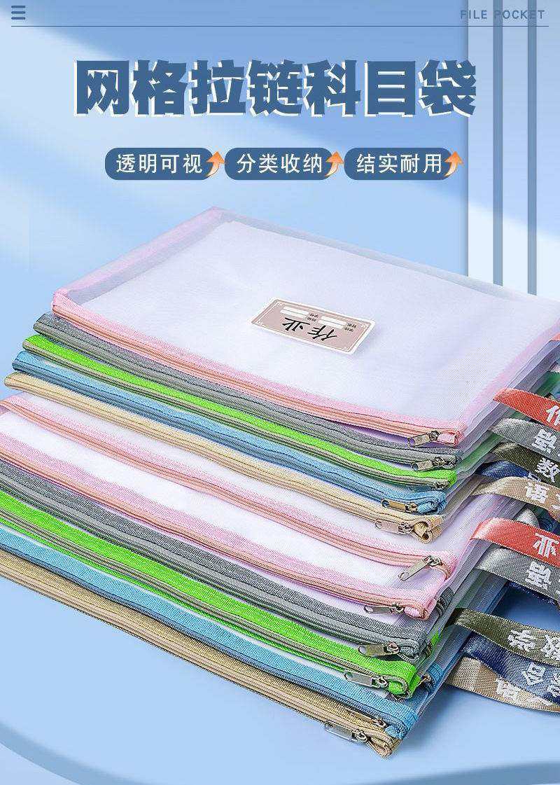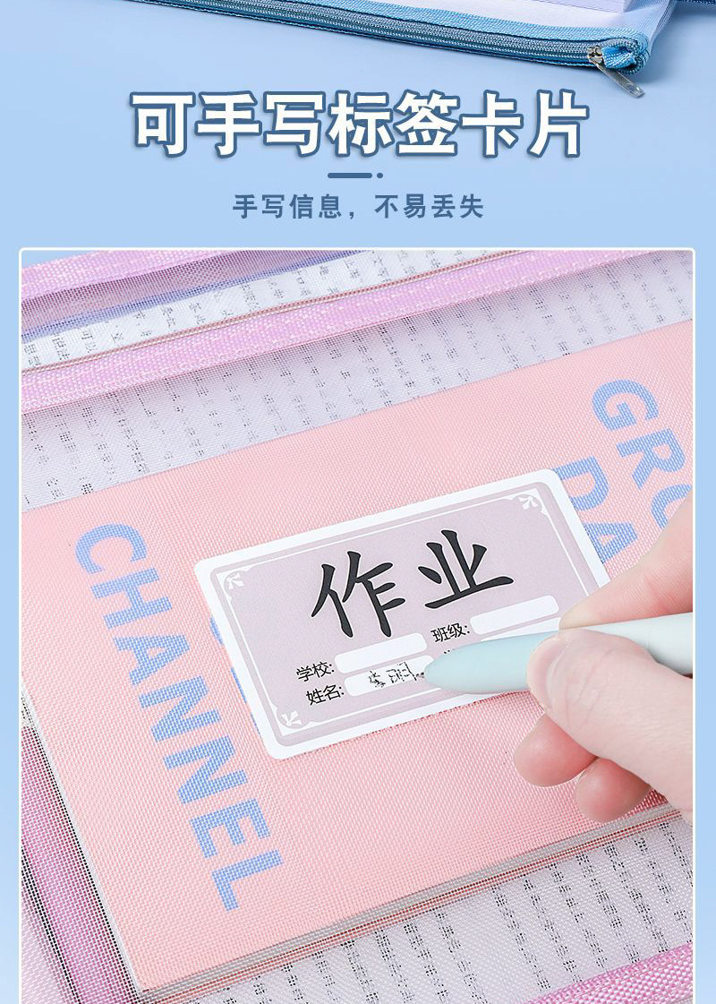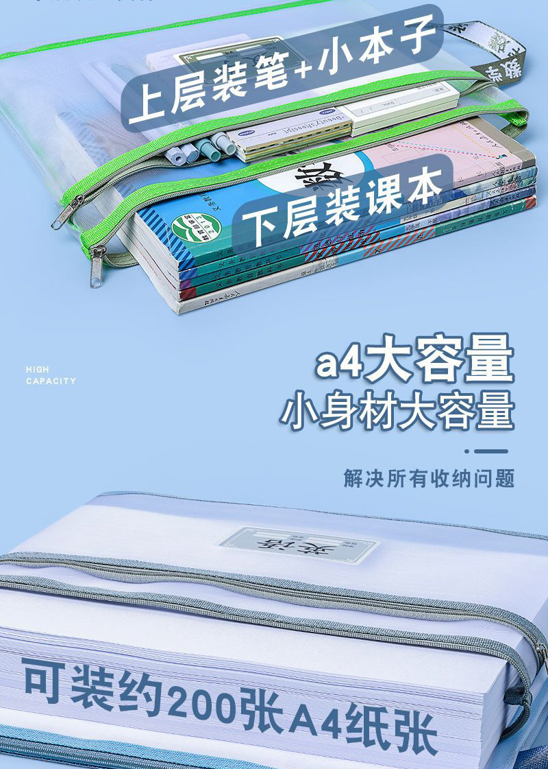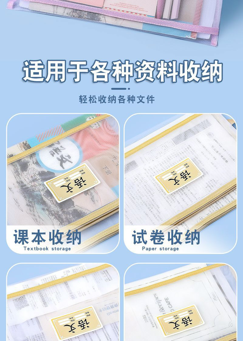 A4 과목 가방 휴대용 문서 가방 이중층 대용량 투명 메쉬 숙제 시험지 과목 분류 보관 가방스토어 가기