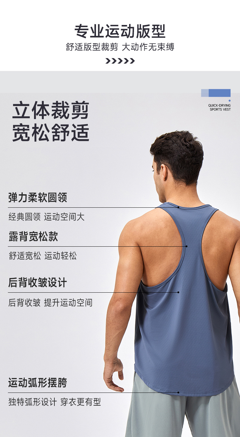 남자 느슨한 피트니스 조끼 라운드 넥 러닝 스포츠 탑 유럽과 미국의 빠른 건조 통기성 훈련 I 자형 조끼 41115