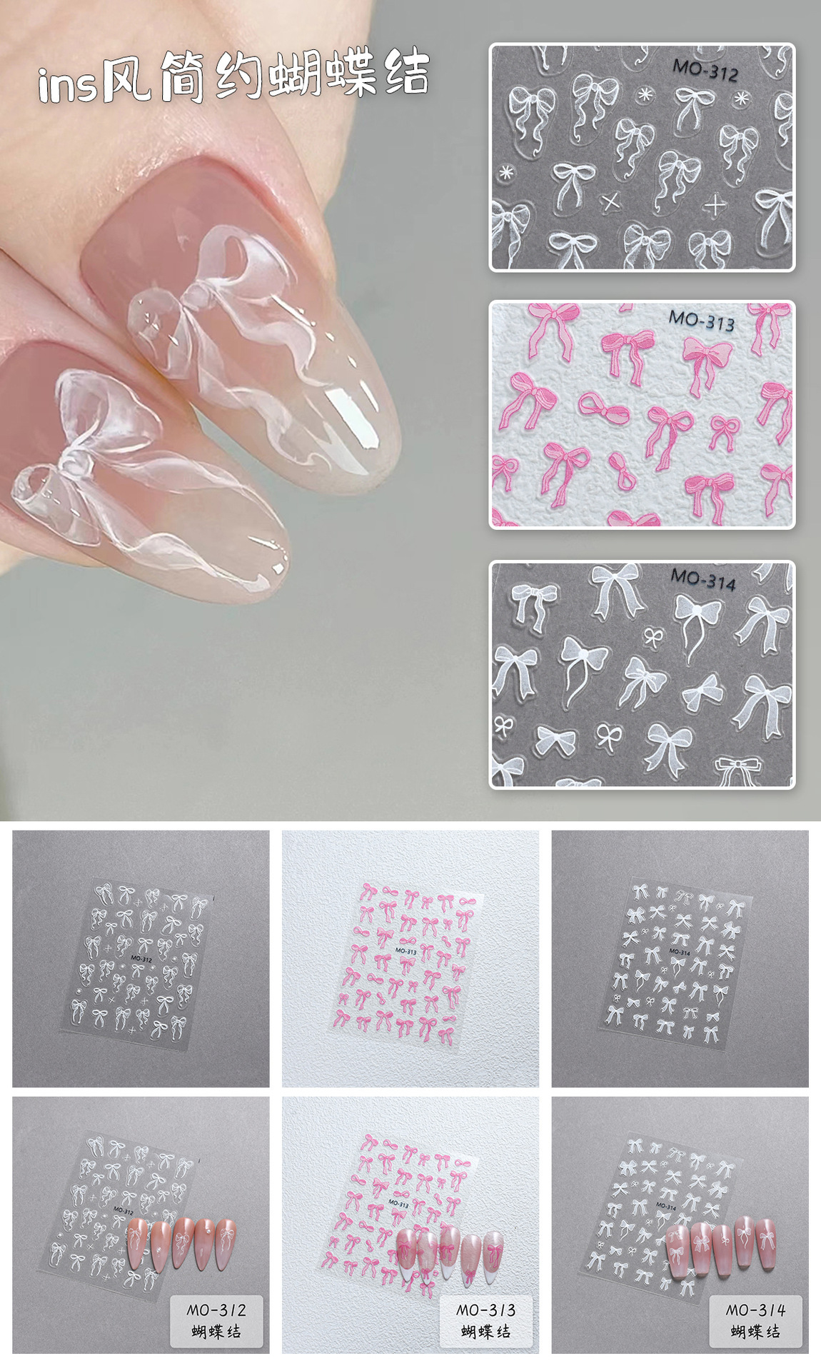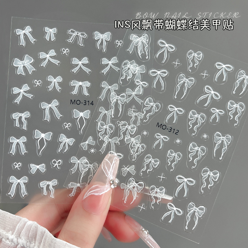 활 네일 아트 스티커 릴리프 스테레오 귀여운 소녀의 심장 핑크 화이트 리본 활 네일 스티커 장식스토어 가기