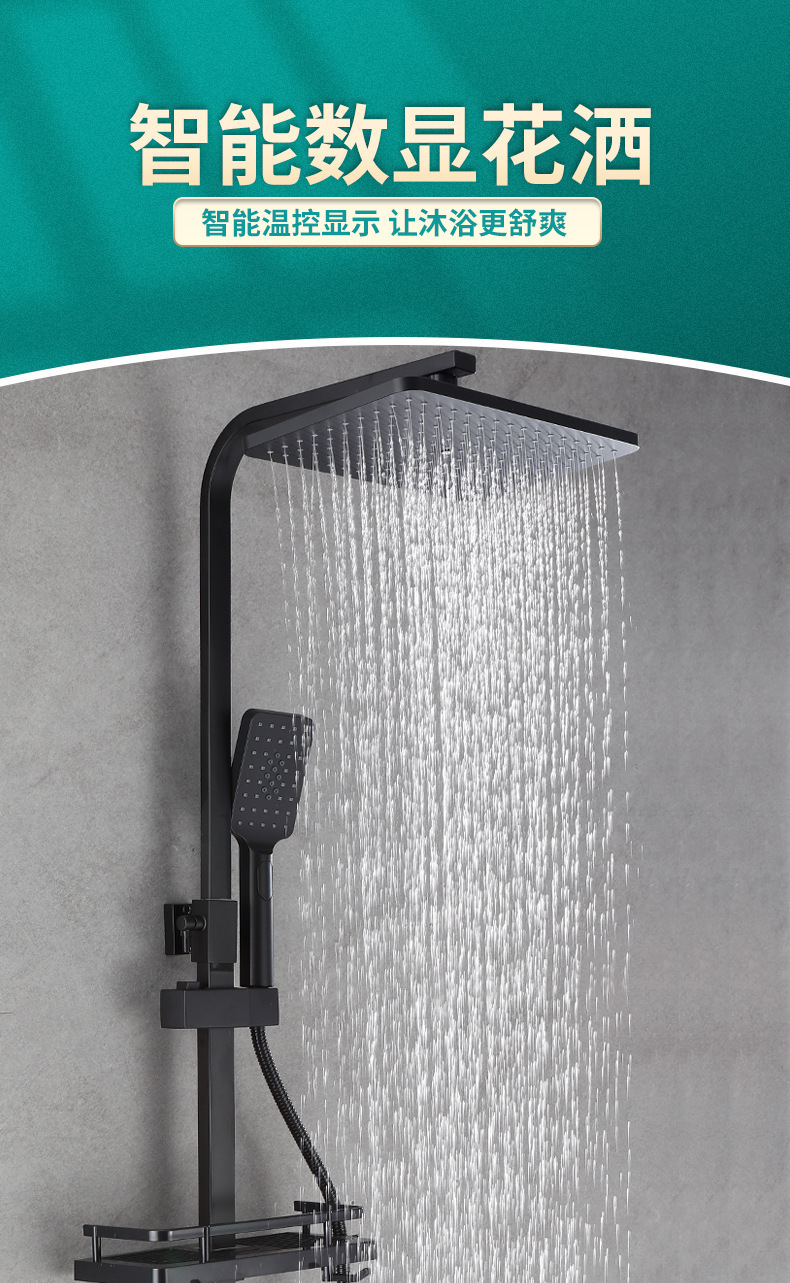 샤워 샤워 블랙 디지털 디스플레이 일정한 온도 가정용 호텔 욕실 화장실 엔지니어링 레인 샤워 노즐 세트 도매