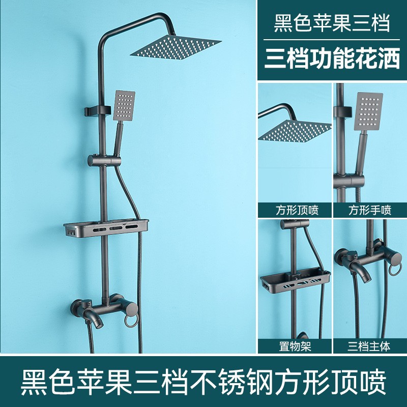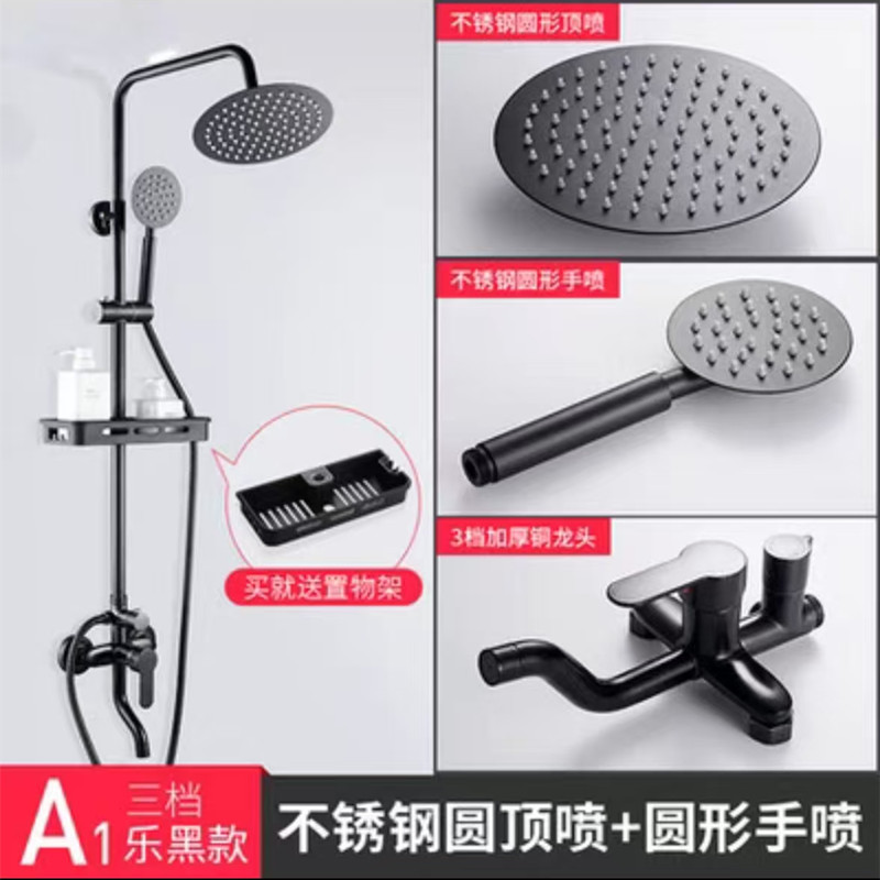 • 블랙 플라잉 3단 라운드 탑 스프레이 샤워 + 스토리지 랙(시장 모델)