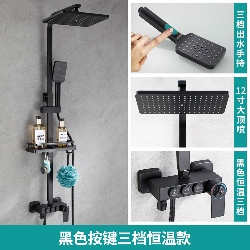 • 꿈 블랙 골드 버튼 3 일정한 온도 샤워 세트