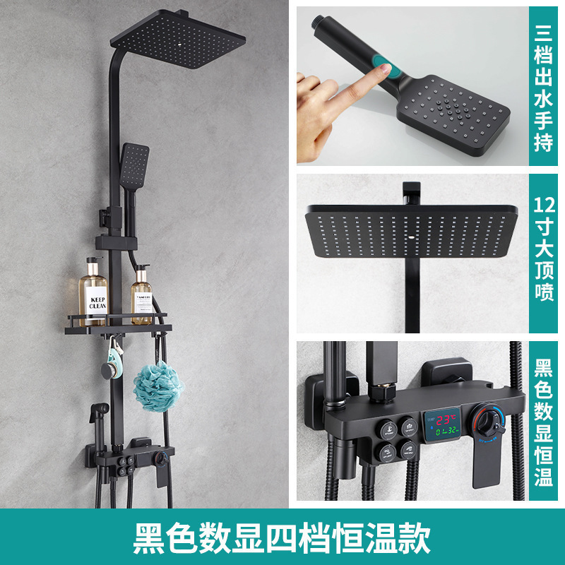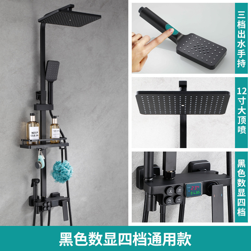 샤워 샤워 블랙 디지털 디스플레이 일정한 온도 가정용 호텔 욕실 화장실 엔지니어링 레인 샤워 노즐 세트 도매스토어 가기