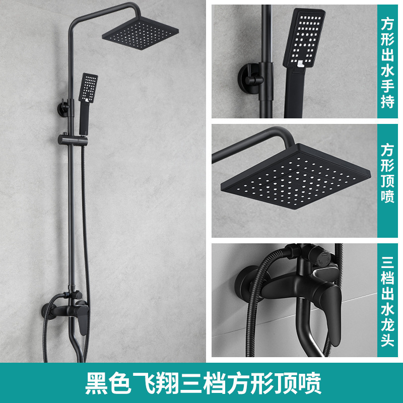 • 블랙 플라잉 3단 사각 탑 스프레이 샤워 헤드(하이 구성)