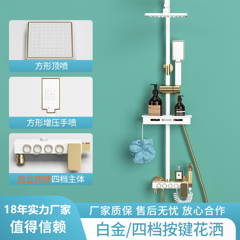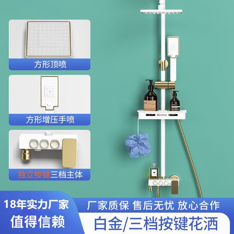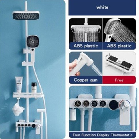 • 흰색 버튼 4단 디지털 디스플레이 항온 샤워 헤드 - 구리 본체