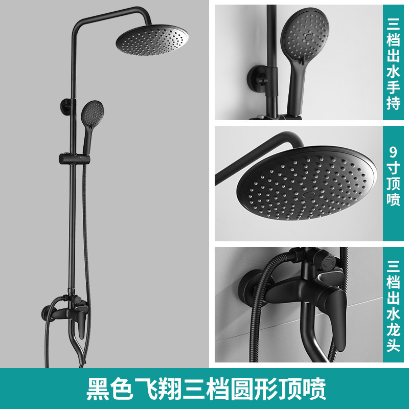 • 블랙 플라잉 3단 라운드 탑 스프레이 샤워 헤드(하이 구성)