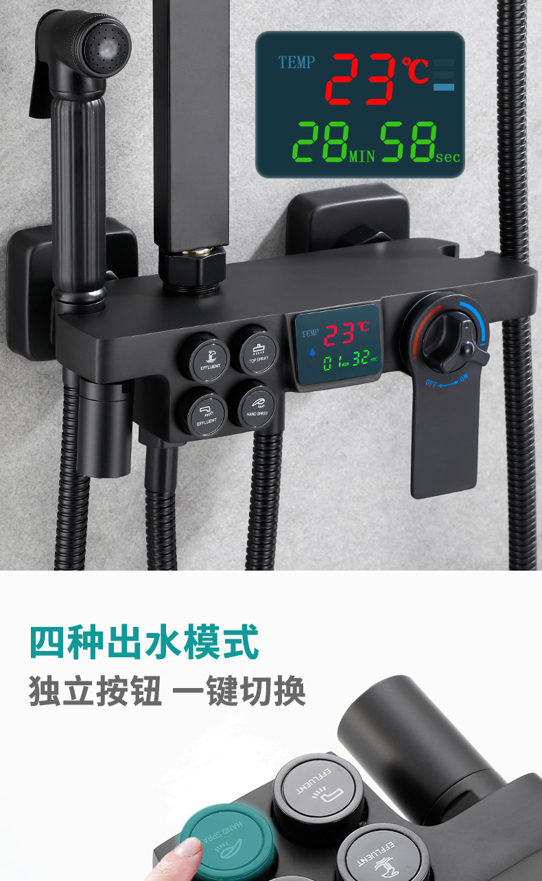 • 드림 블랙 골드 버튼 디지털 디스플레이 범용 샤워 세트