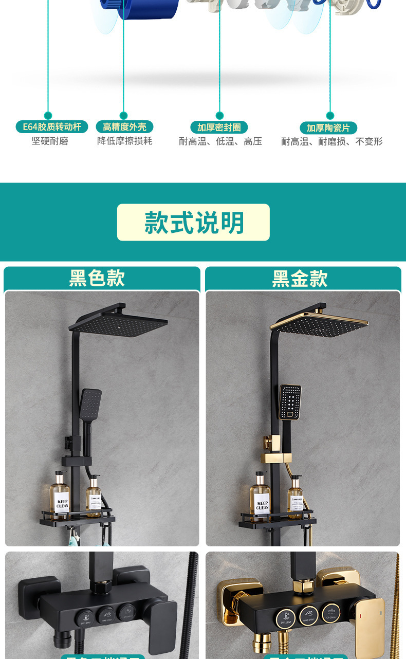 • 드림 블랙 골드 버튼 4 일정한 온도 샤워 세트