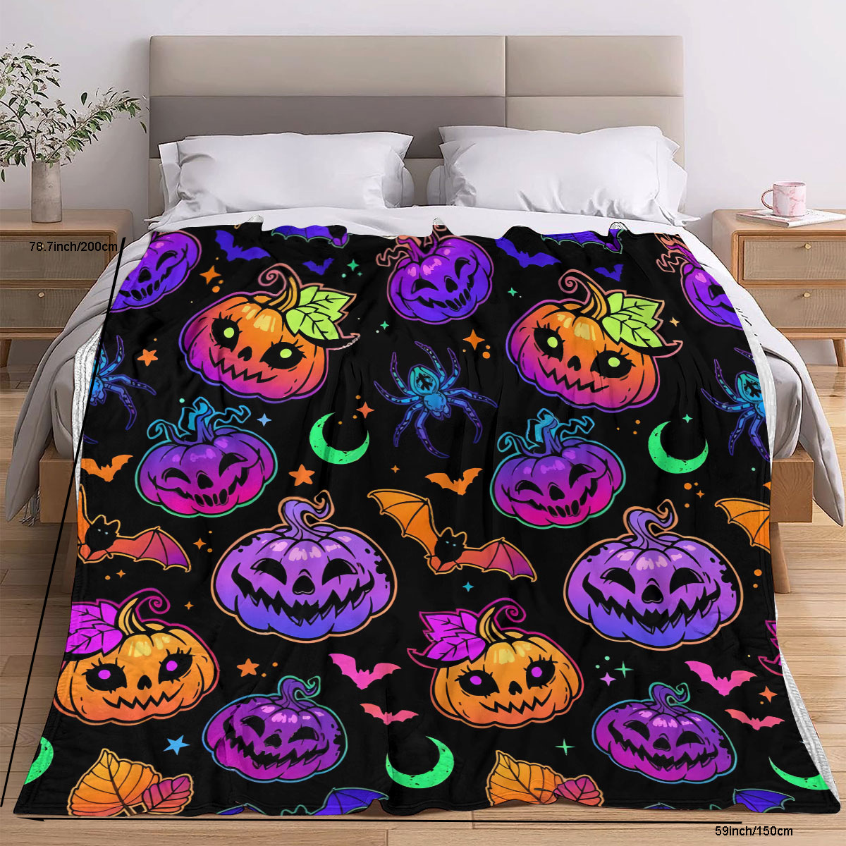 국경 간 뜨거운 판매 할로윈 박쥐 플란넬 인쇄 담요 에어컨 커버 담요