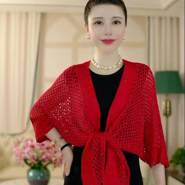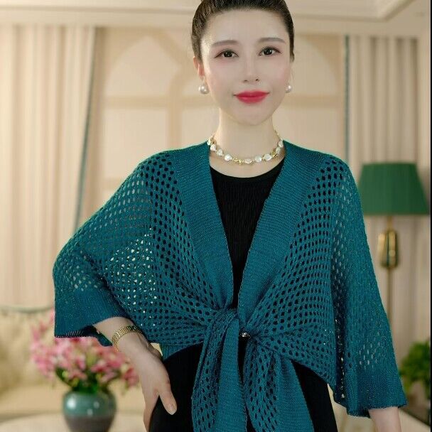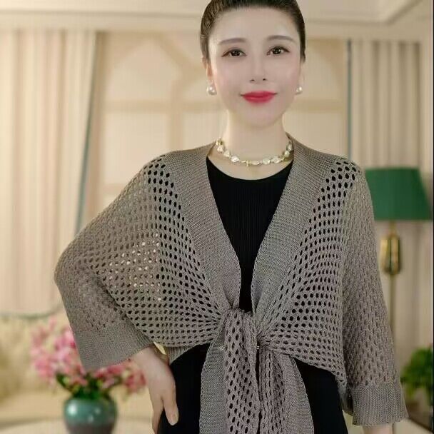 새로운 여성 여름 선스크린 목도리 에어컨 룸 야외 패션 실버 나비 슬리브 니트 숄더 패드