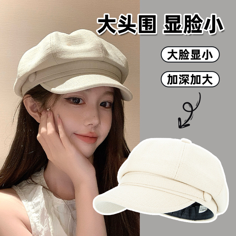 2024 새로운 베레 여성 여름 패션 하이 엔드 예술적 화가의 모자 와이드 브림 보이는 얼굴 작은 팔각형 모자스토어 가기