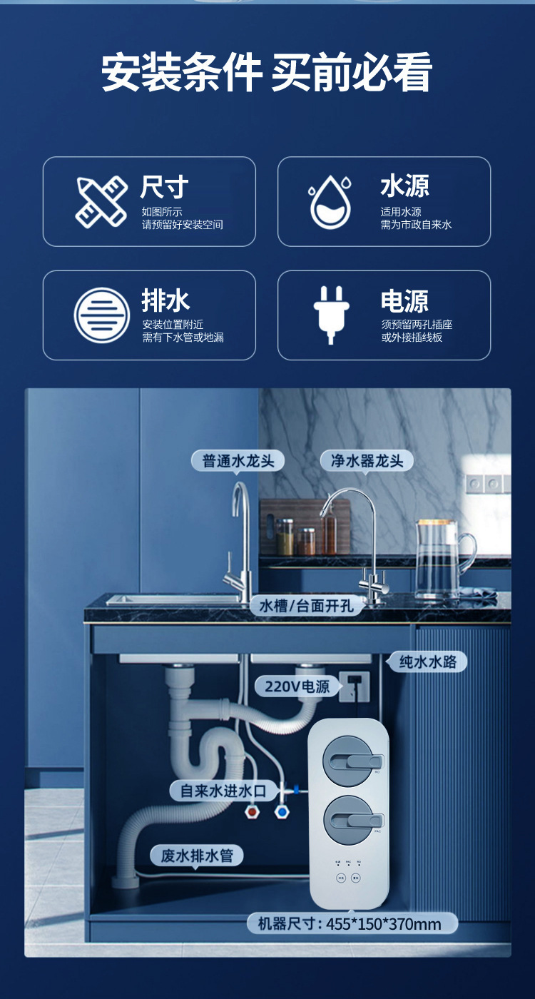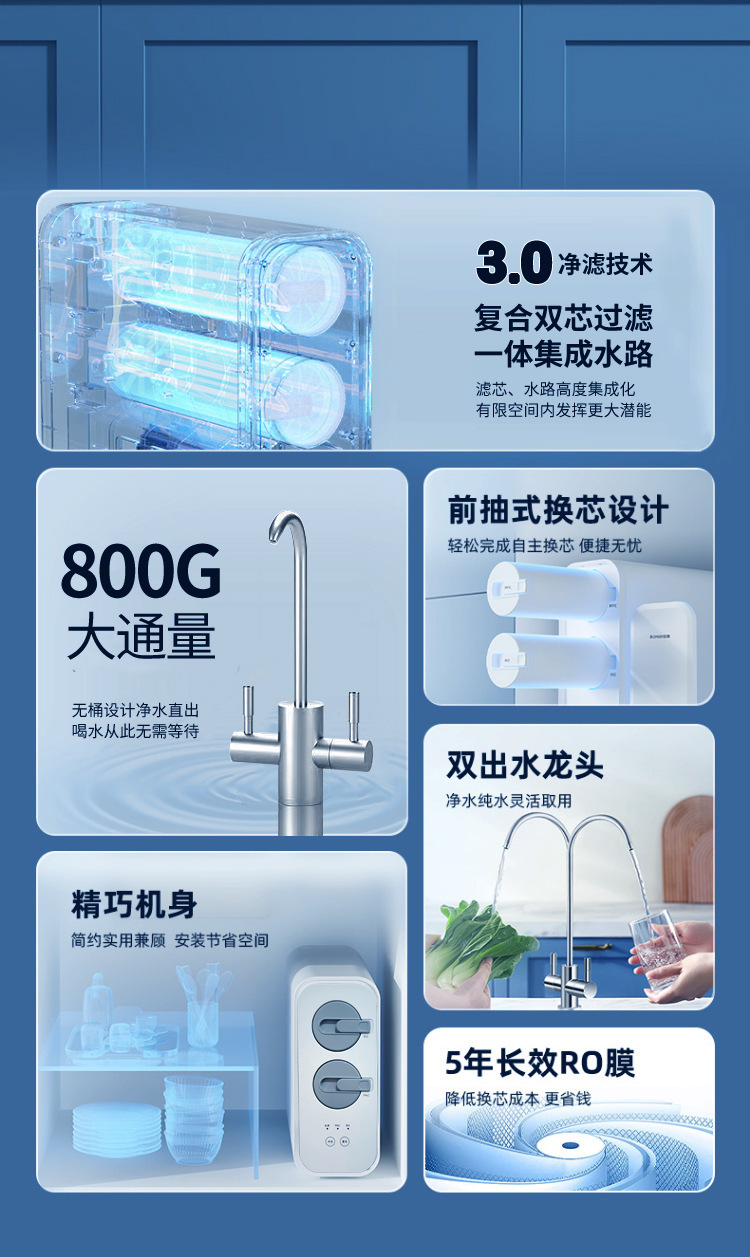 800G 역 삼투압 정수기 큰 흐름 직접 식수 가정용 주방 통 무료 정수기 두 배 출구 직접 식수 청정기스토어 가기