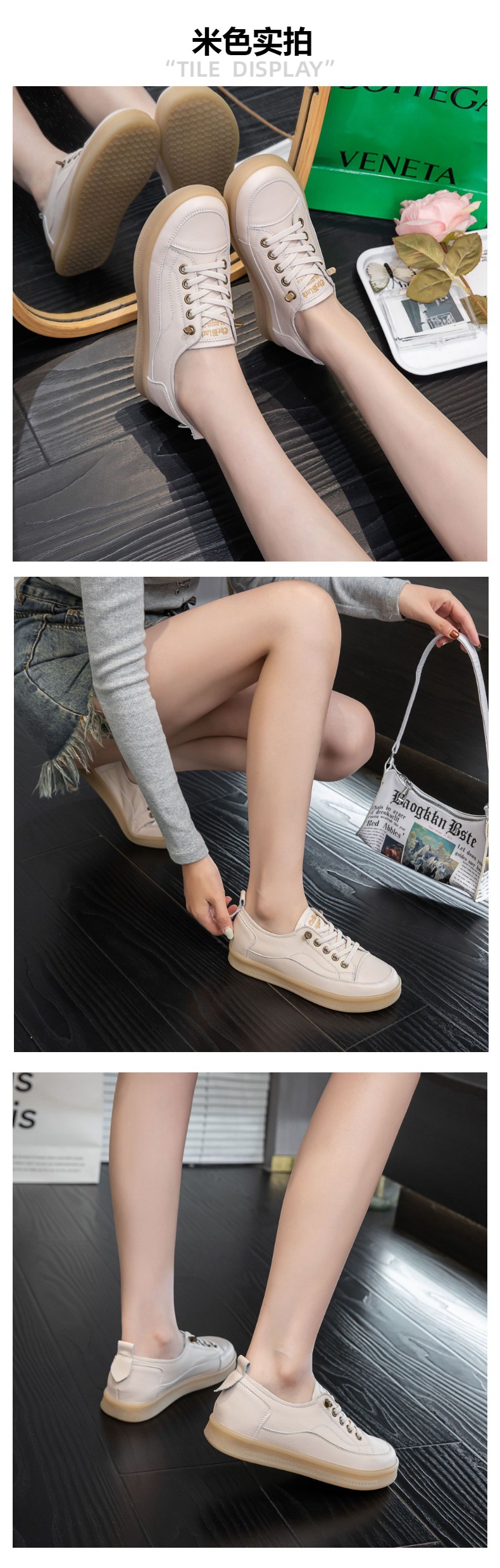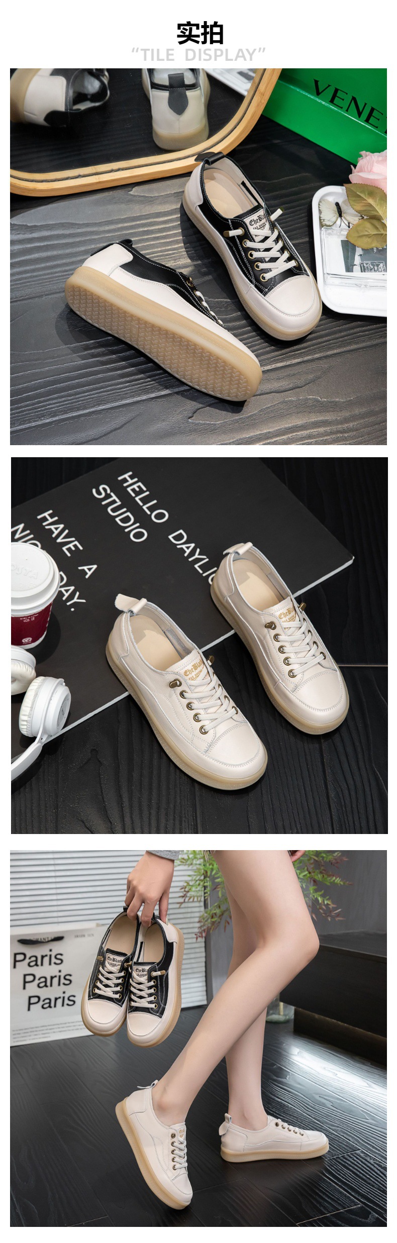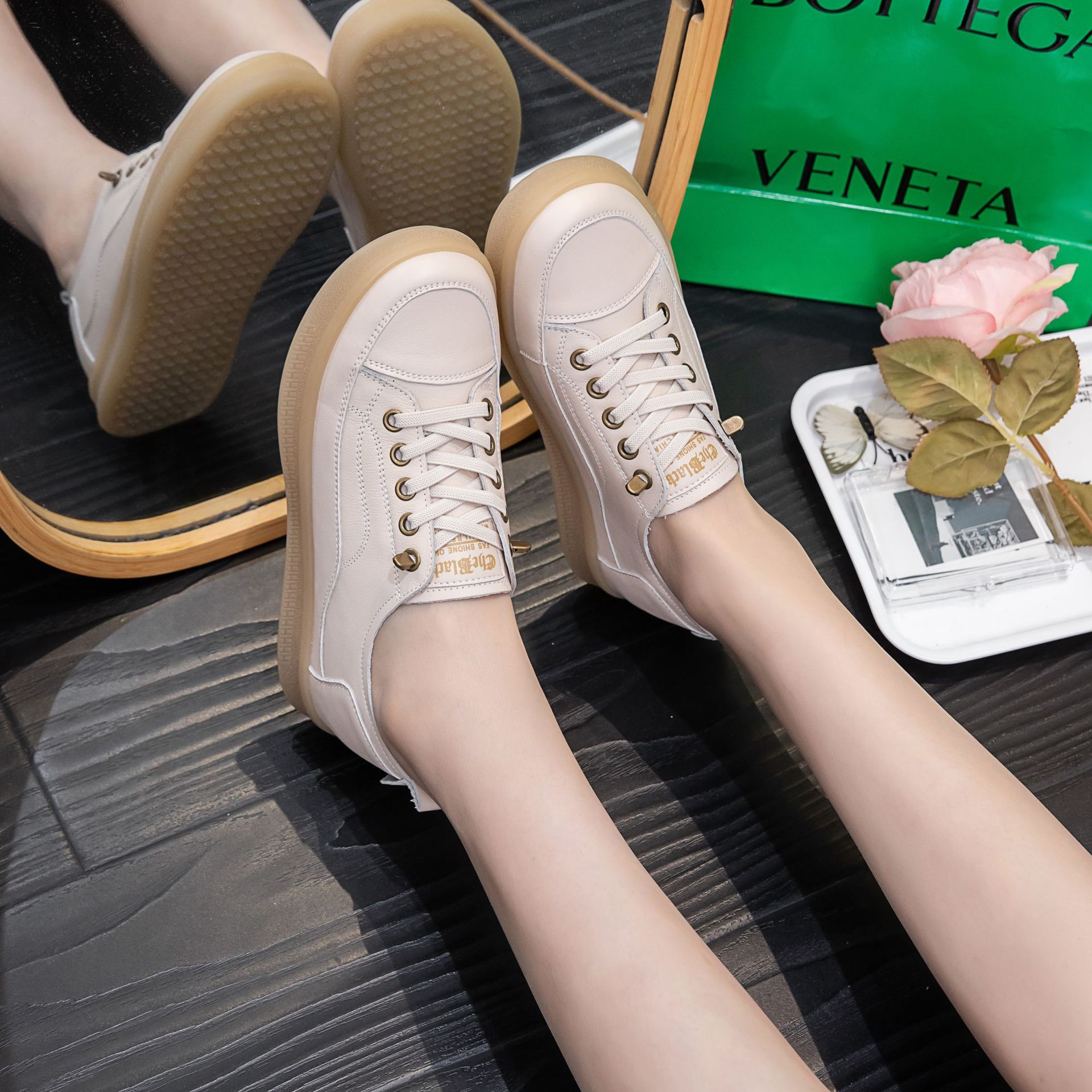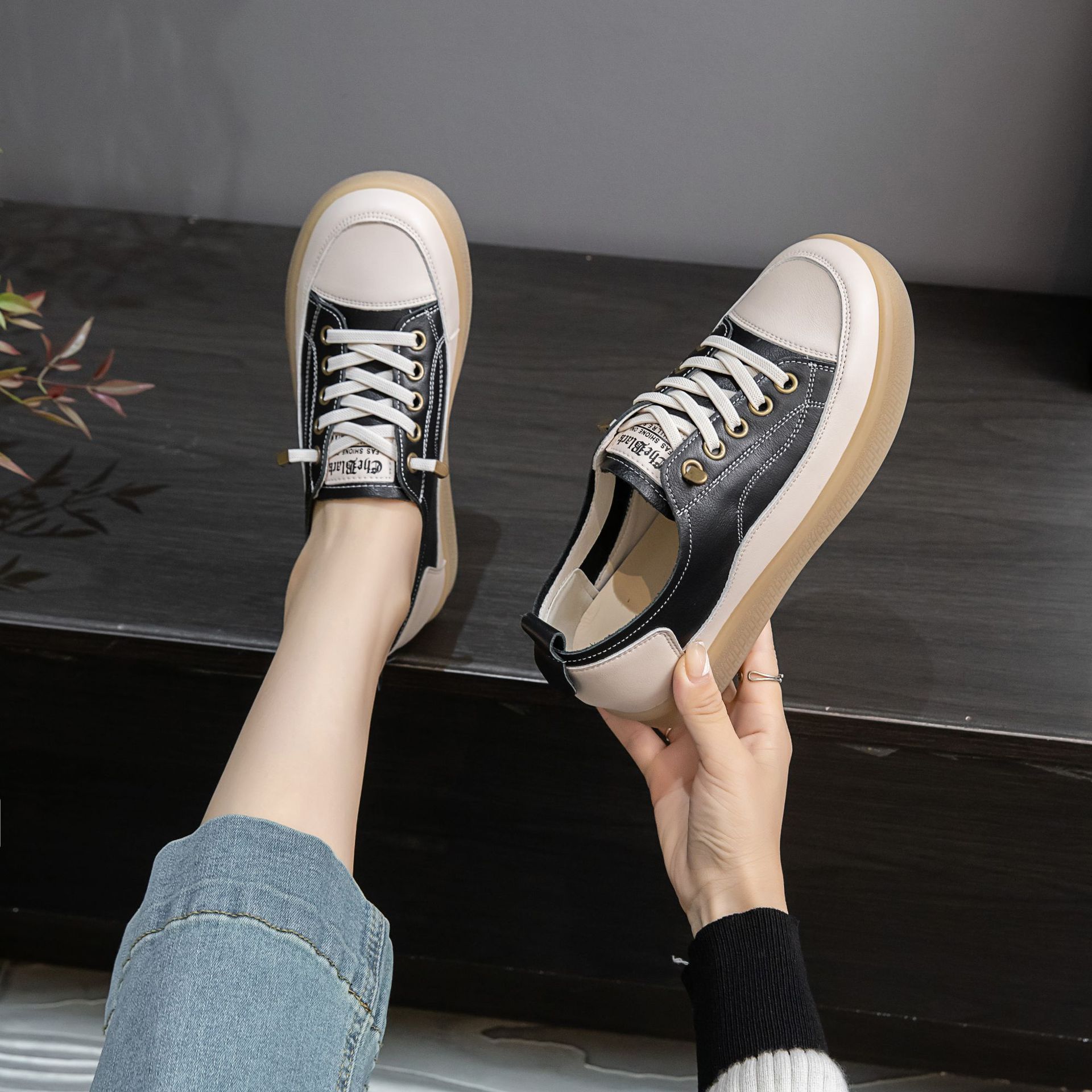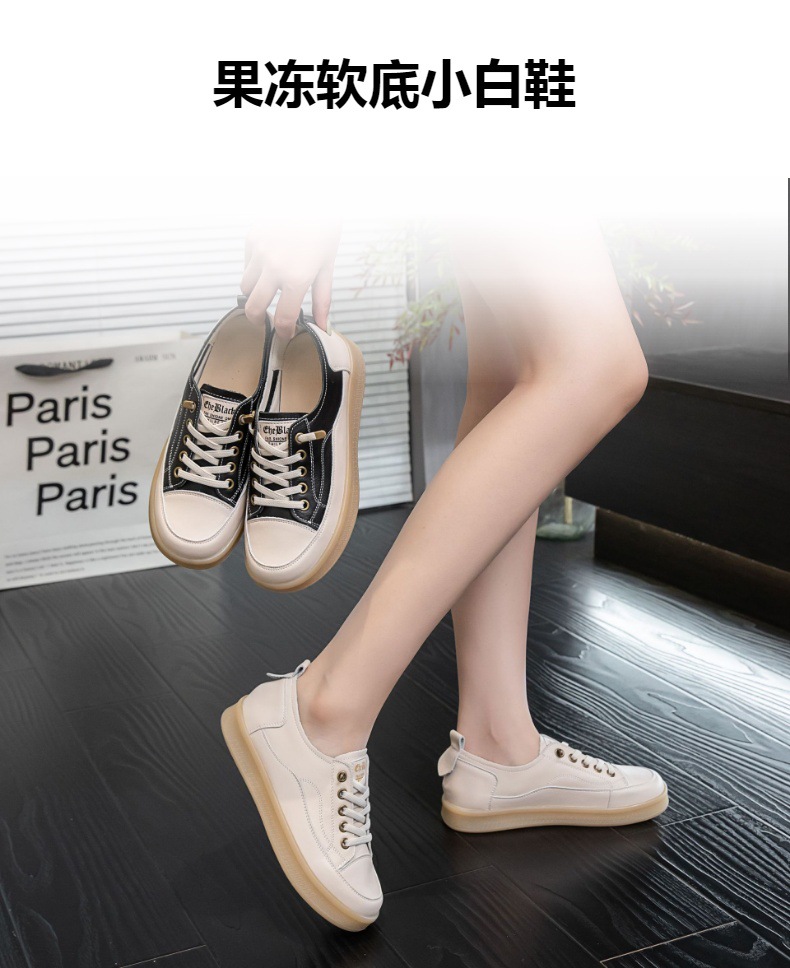 2025년 신상품 천연 소가죽 여성용 단화 화이트 슈즈 고무 젤리 소프트솔 캐주얼 플랫 슈즈스토어 가기