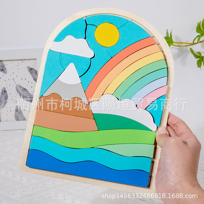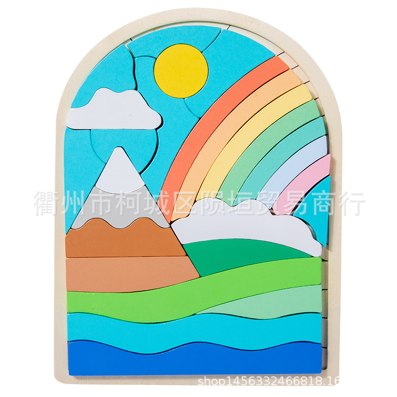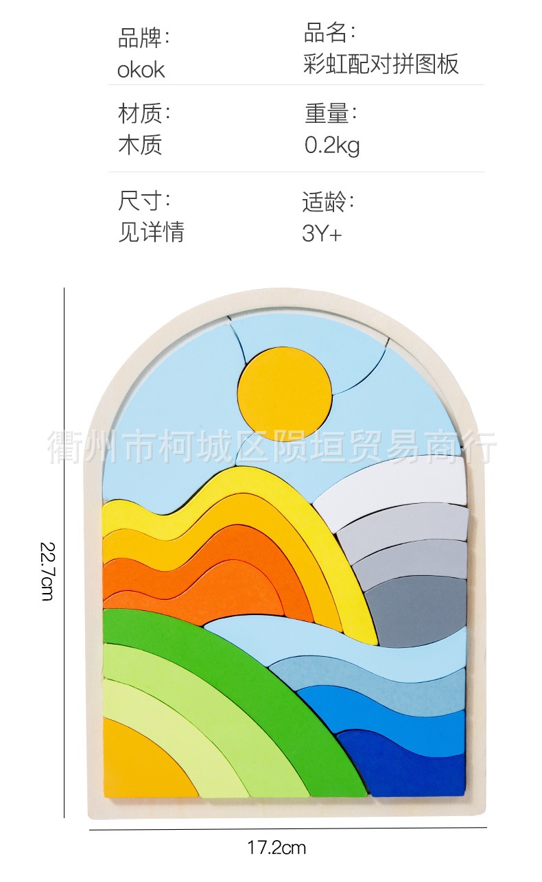 【色彩配对板】学具教具色彩形状认知拼板摆件彩虹配对板,每个拼板有板块数块,每个板块对应不同颜色不同形状,通过对应板块放置在托盘上,逐渐形成一副完整的卡通图案,对于色彩的认知,对于形状的认知,对应美术素养的认知,都有帮助。
