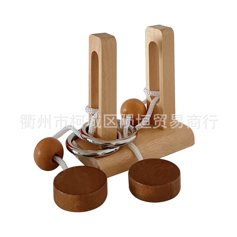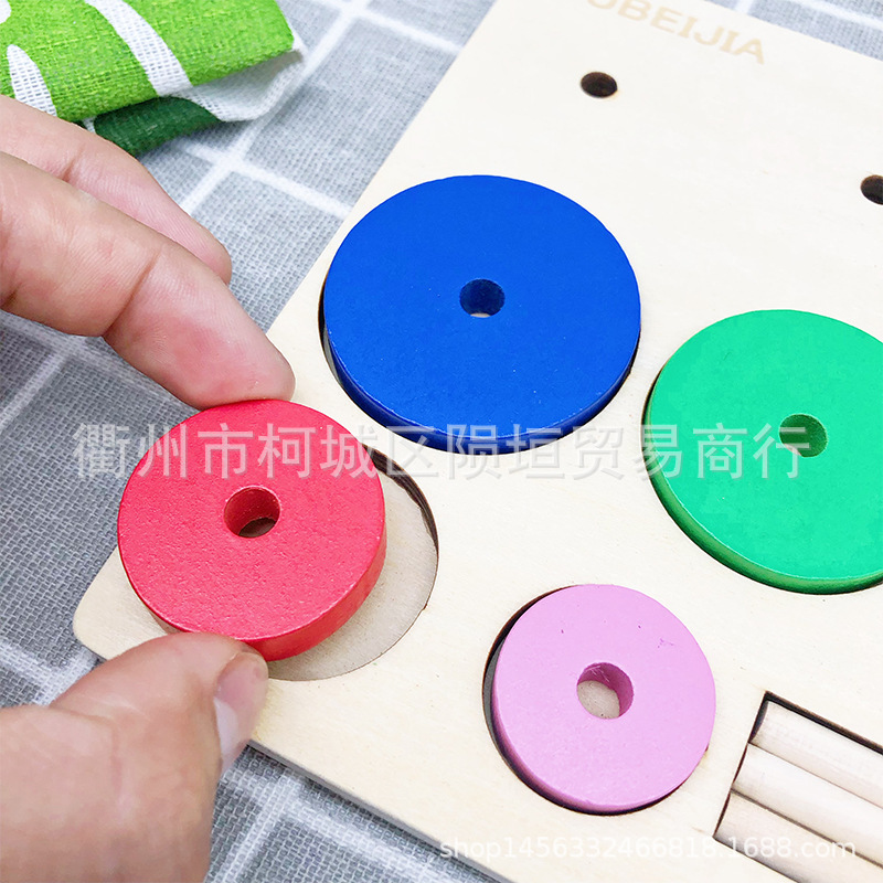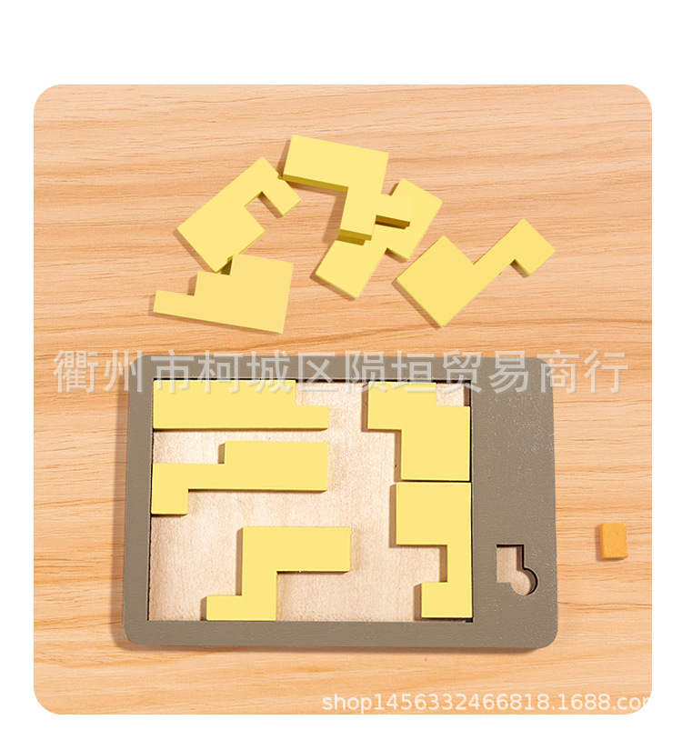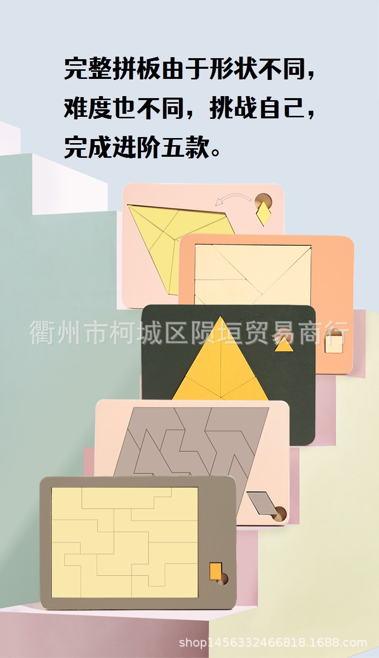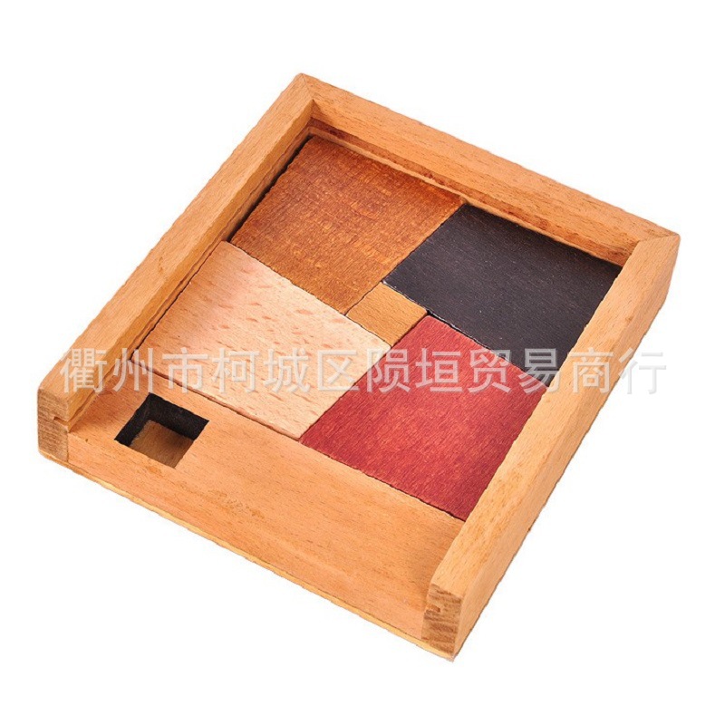 【巧放五巧板】将小方块,小圆块,小三角块,放入不规则的四个大木块中间,从而将底盘中间的缝隙填补完整,看是简单,其实需要一定的空间想象能力,在脑海里形成一个立体空间思维画面,完成挑战。