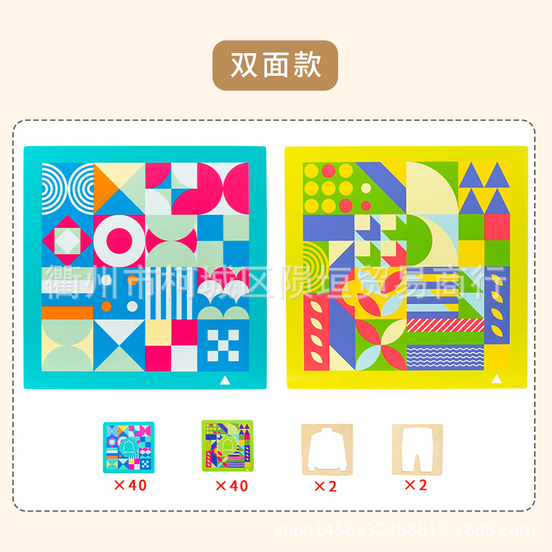 【巧放几何拼板】通过移动大几何拼图的板块位置,将小拼板放入,从而形成另一个完整的几何图形。【动物子母立体拼图】几何图案组合桌面游戏套装,数学教具学具,通过拼装对应的图案,加深对几何图形的组合理解,同时提升美学美术的审美思维能力,可以作为数学教学辅助和美术教学辅助,也可以作为学生创意礼物。【几何的基本概念】几何的研究对象包括平面几何和空间几何,平面几何是研究二维空间中的形状和性质,如点、线、角、三角形、四边形等,空间几何则是研究三维空间中的形状和性质,如球体、圆锥体、圆柱体等。 在几何学中,有许多重要的概念和定理,一些概念包括点、线、面、角、圆、三角形、四边形、多边形等。
