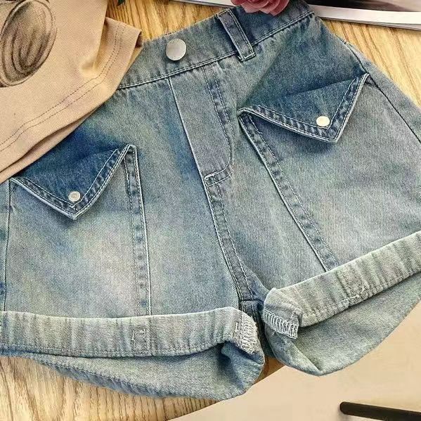 여자 세트 2024 여름 새 어린이 민소매 티셔츠 스타일 투피스 아기 소녀 여름 데님 반바지 세트스토어 가기