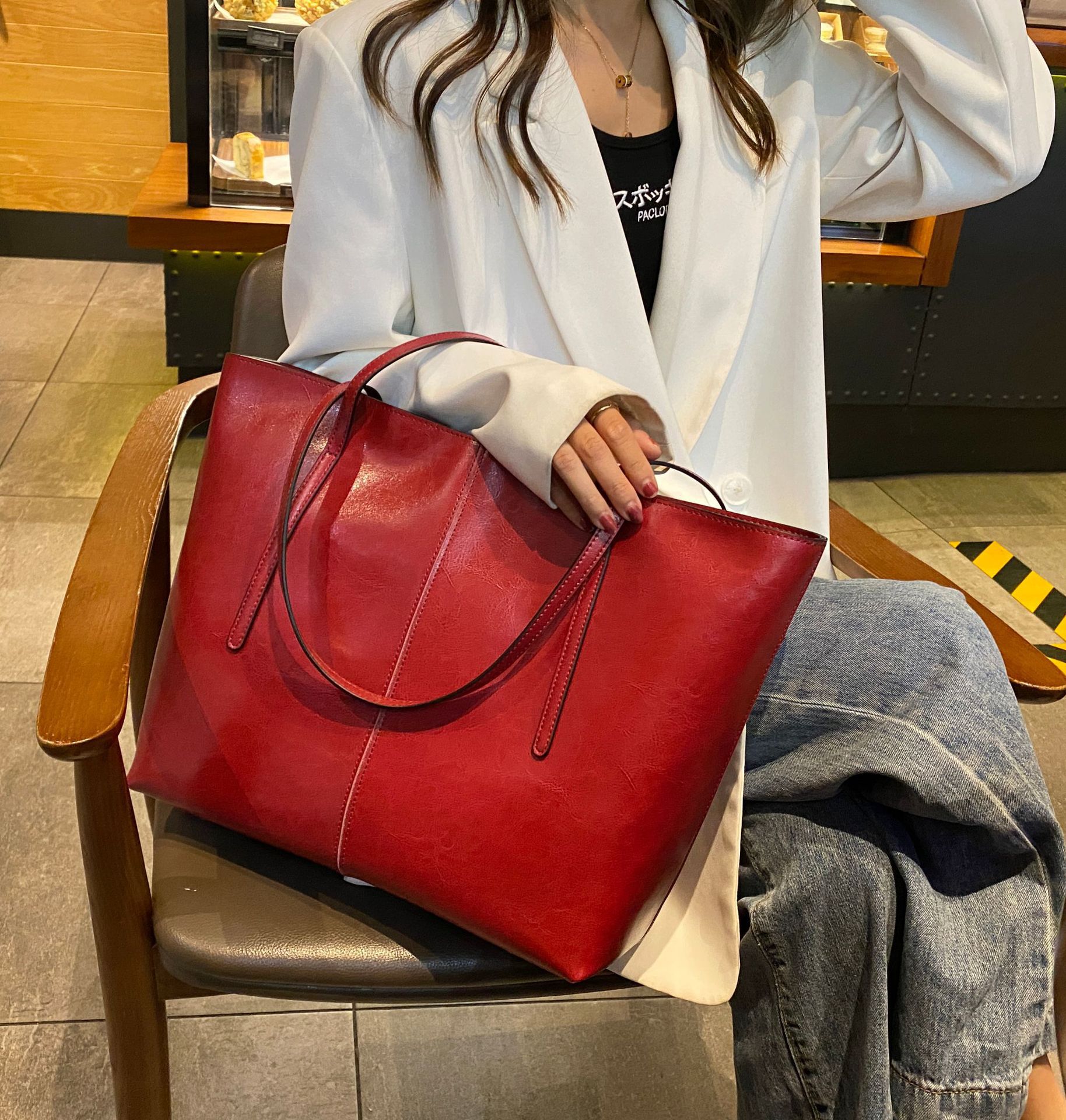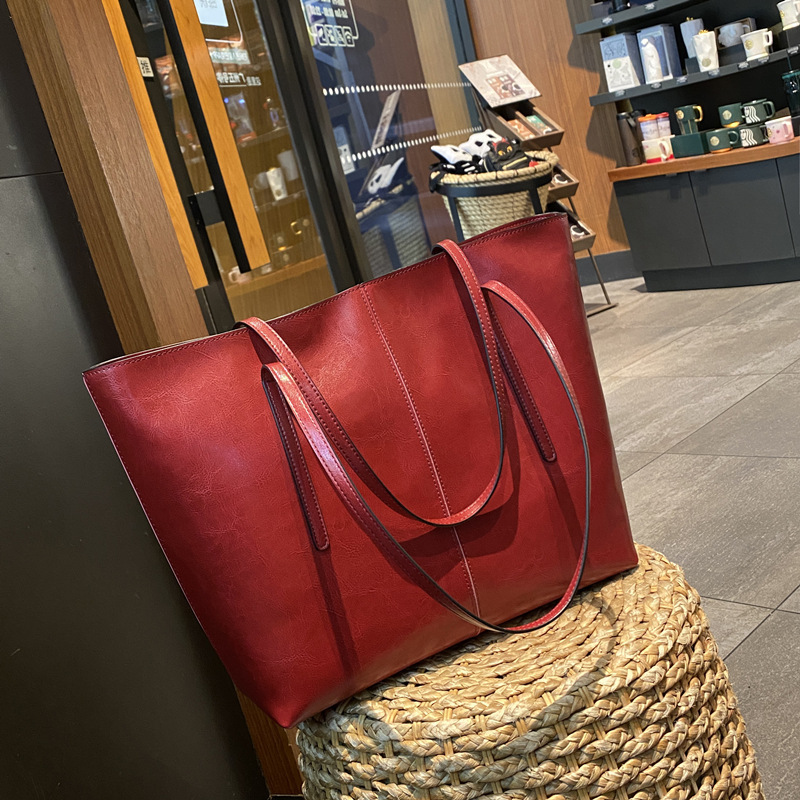 천연가죽 토트백, 패셔너블하고 활용도가 높은 겨드랑이백, 여성용 오일왁스 가죽 숄더백, 여성용 고급 대용량 토트백스토어 가기