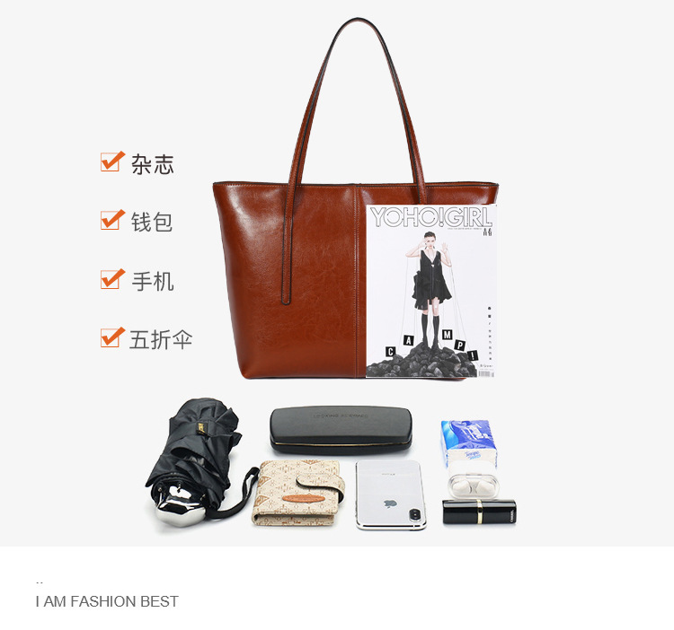 천연가죽 토트백, 패셔너블하고 활용도가 높은 겨드랑이백, 여성용 오일왁스 가죽 숄더백, 여성용 고급 대용량 토트백