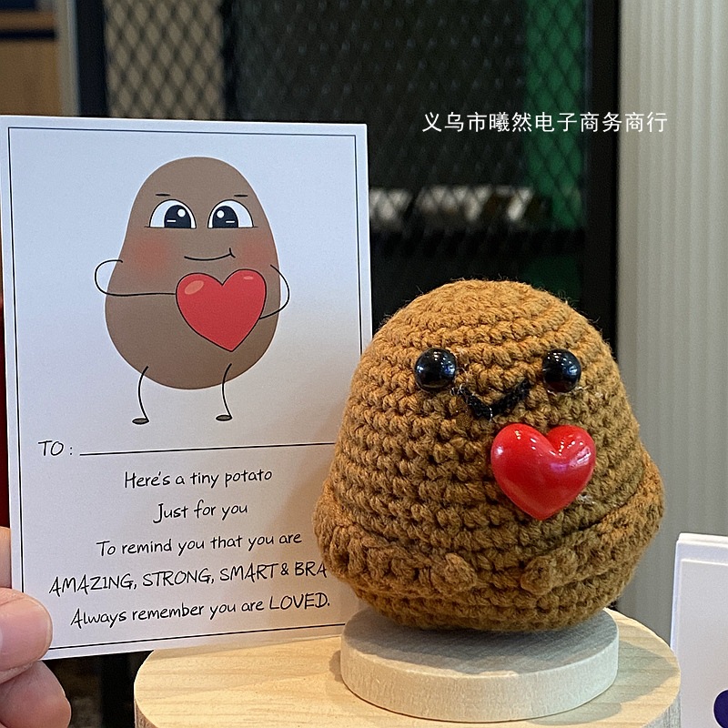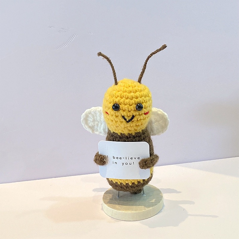아마존 베스트셀러 손으로 짠 긍정적 인 에너지 감자 인형 양모 귀여운 재미있는 표현 꿀벌 와우 장식품스토어 가기