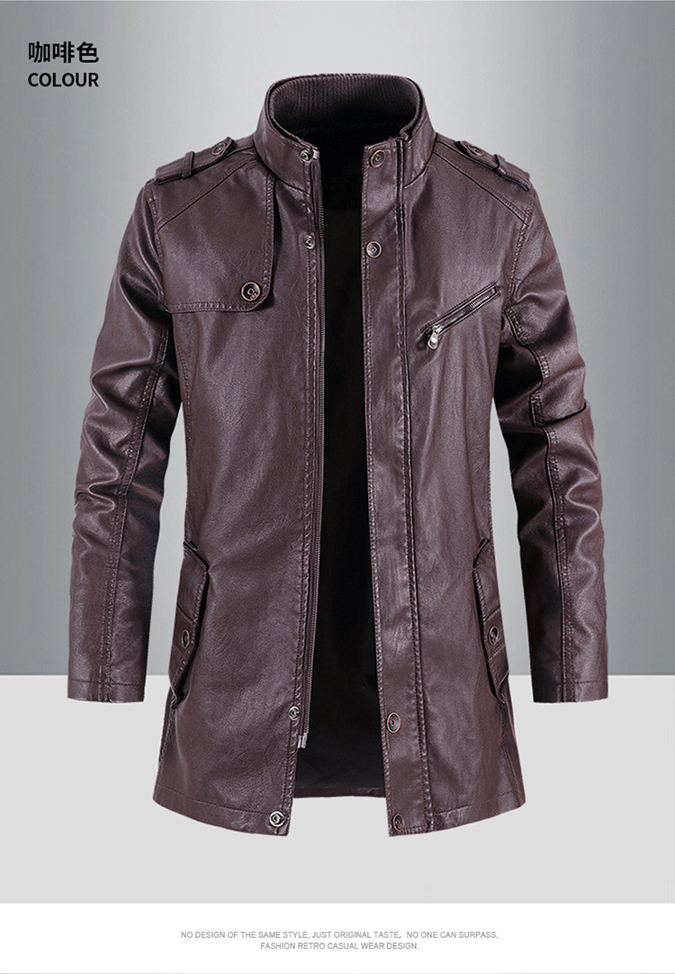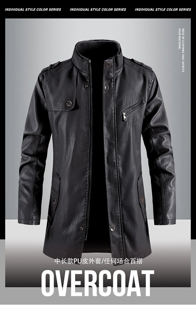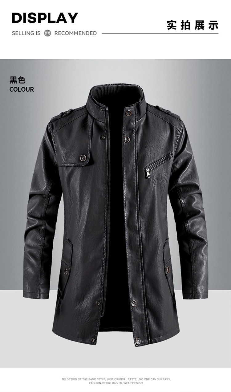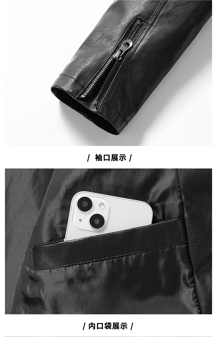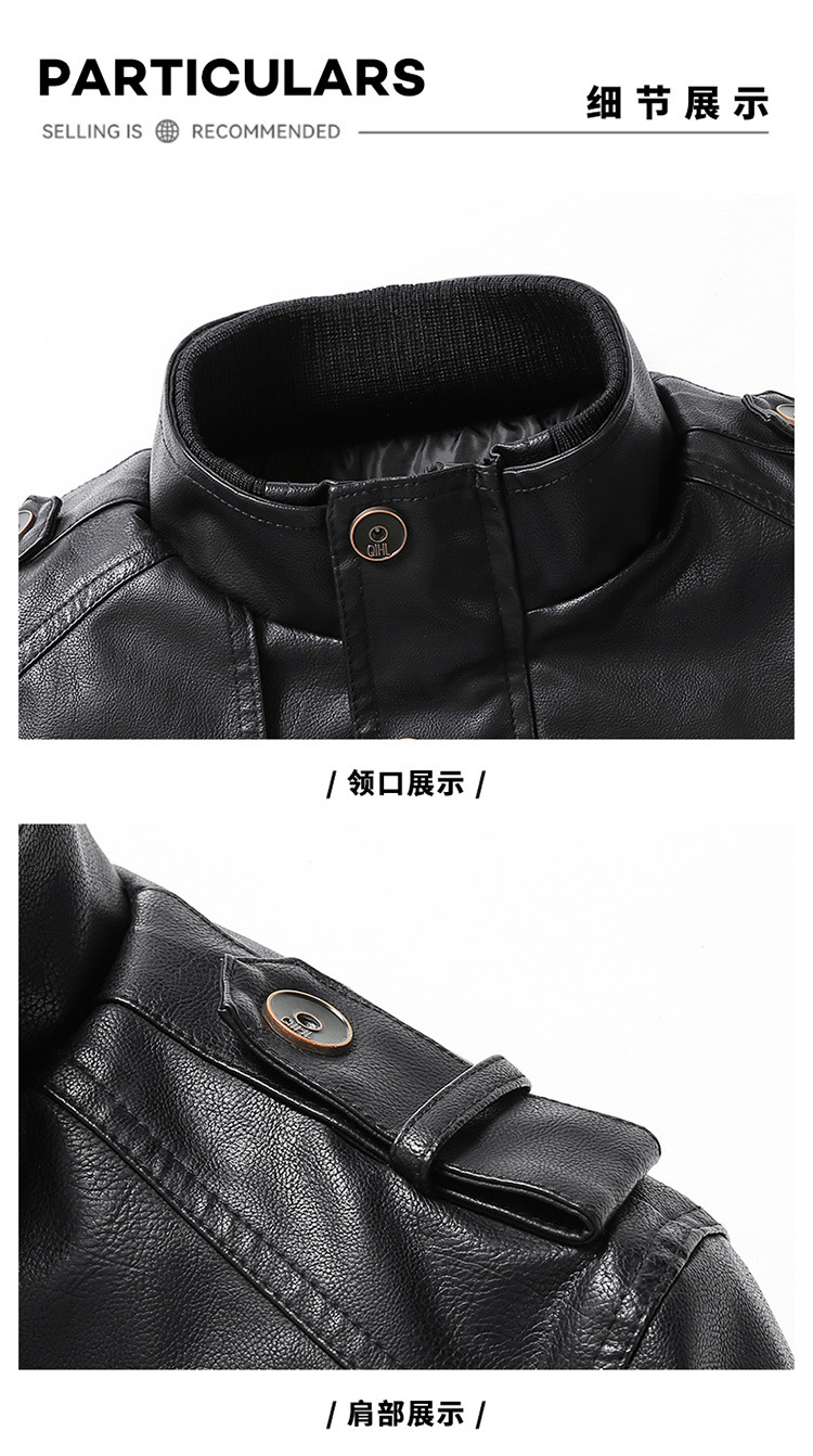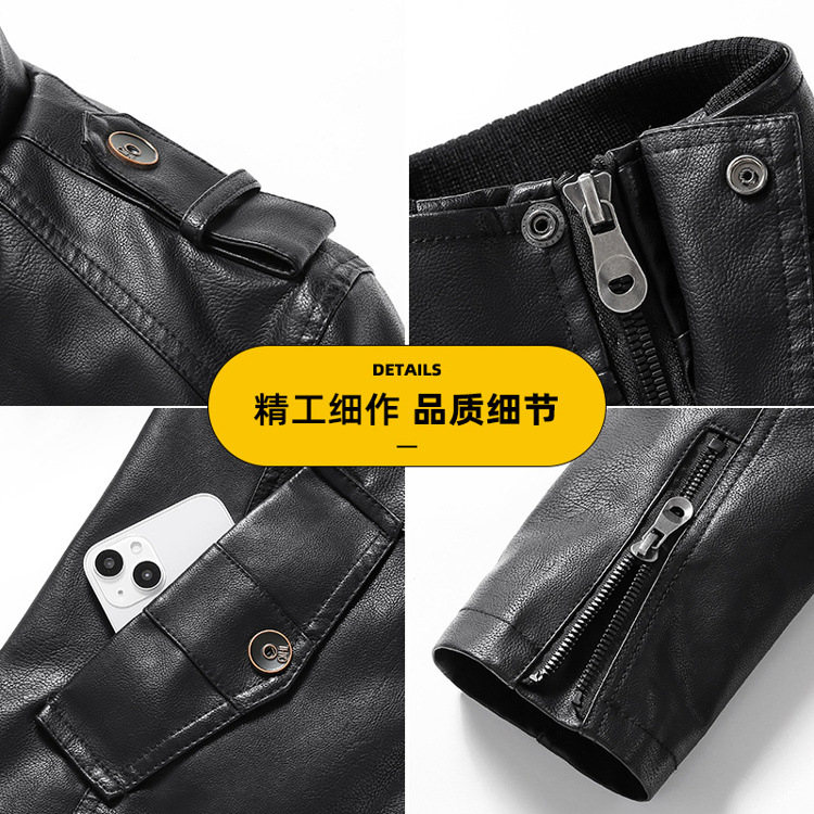 중장 가죽 자켓 가을과 겨울 유럽과 미국 남성 오토바이 가죽 자켓 아마존 트렌디 한 칼라 지퍼 PU 가죽 자켓
