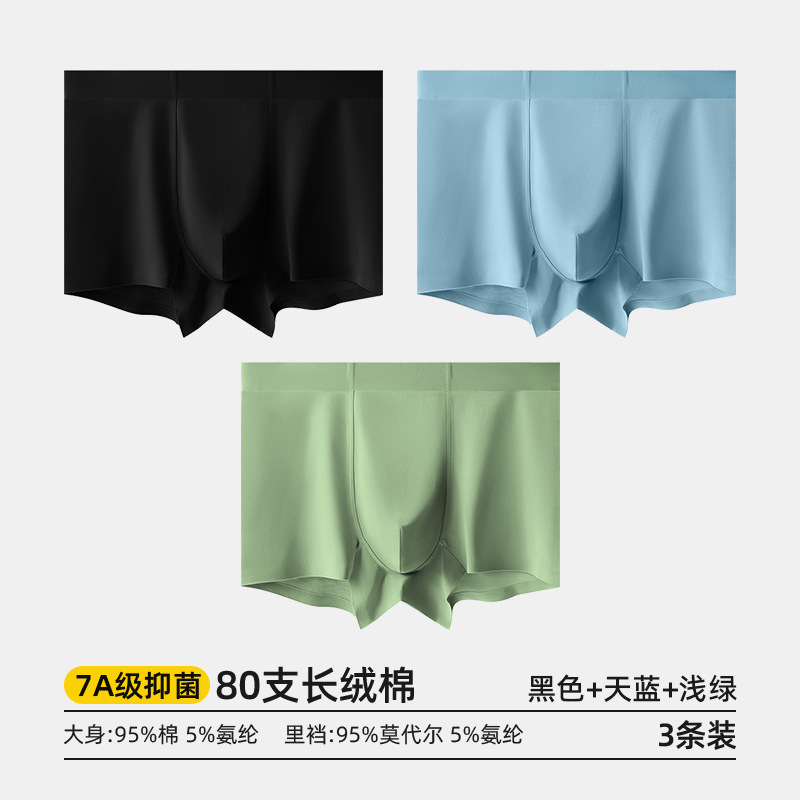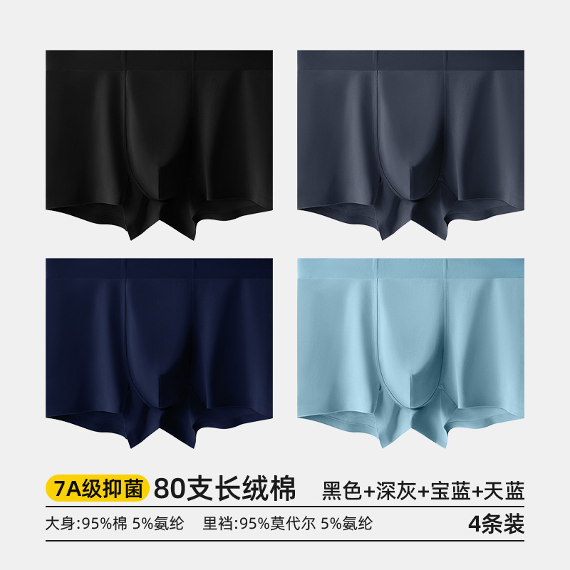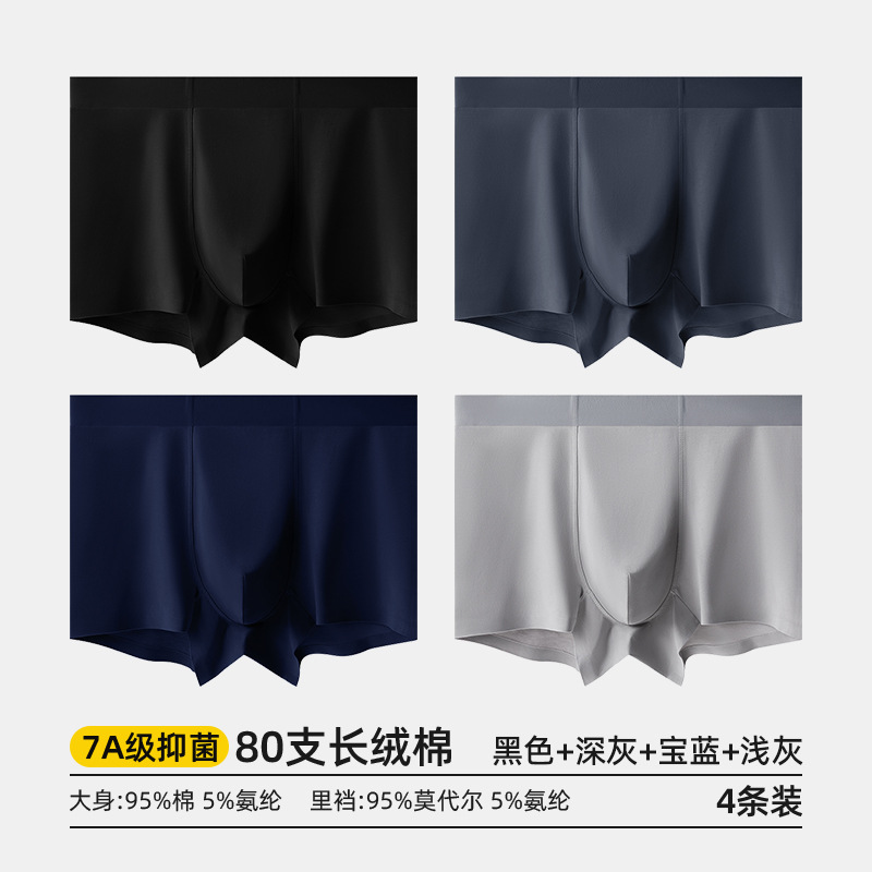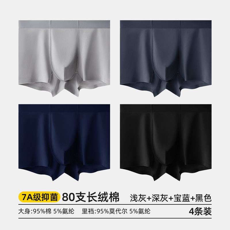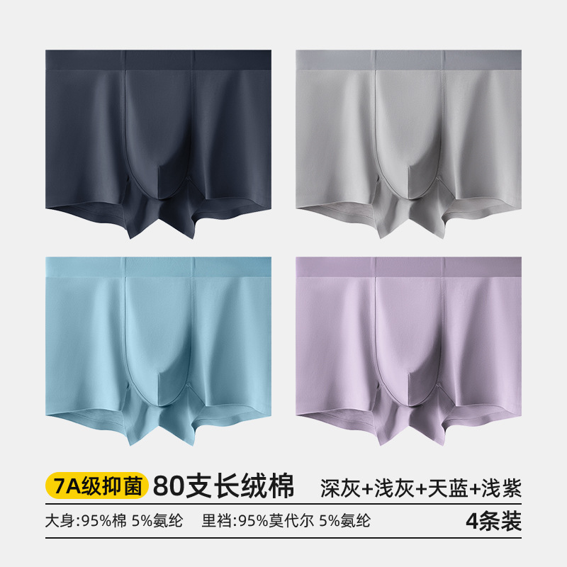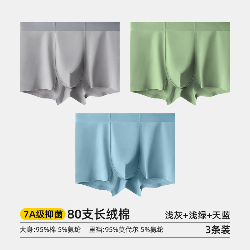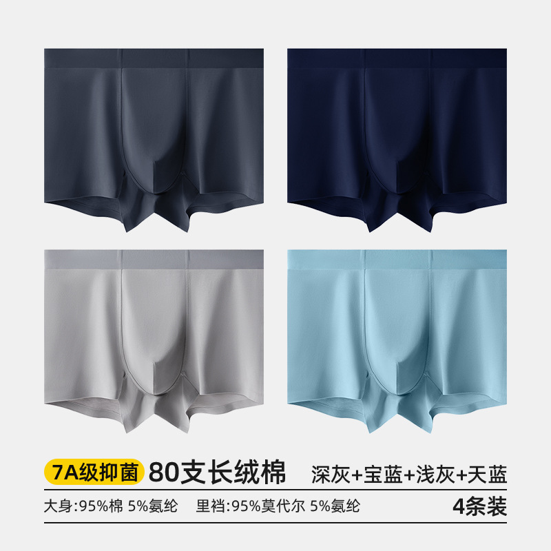 80수 긴섬유면 남성 속옷, 순면 여름용 사각팬티, 7A 항균 모달 남성 사각팬티