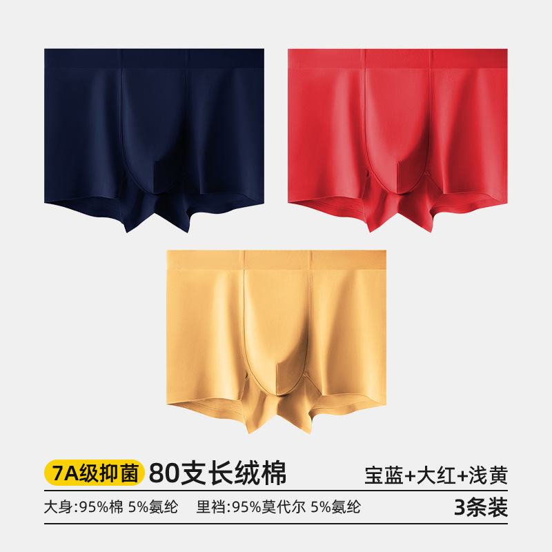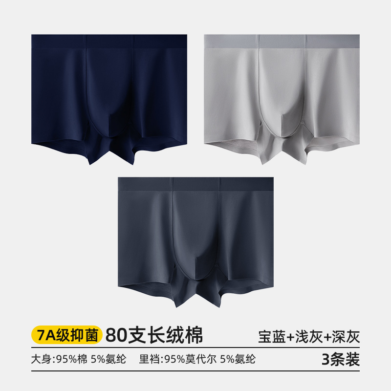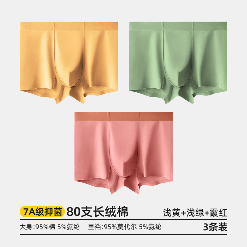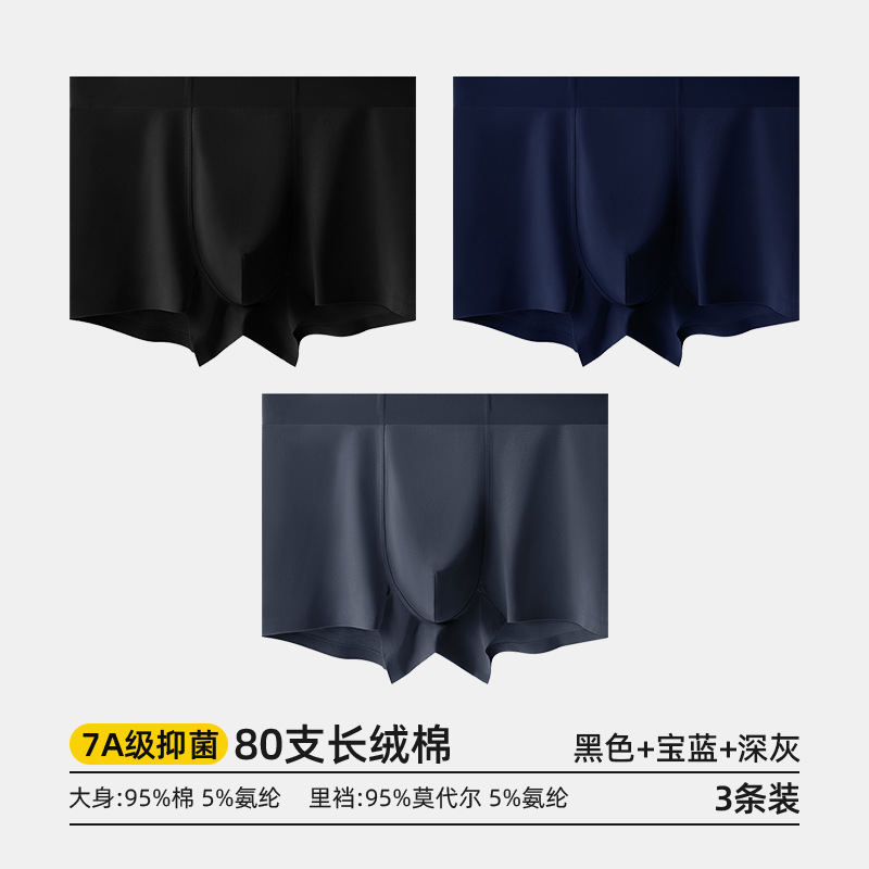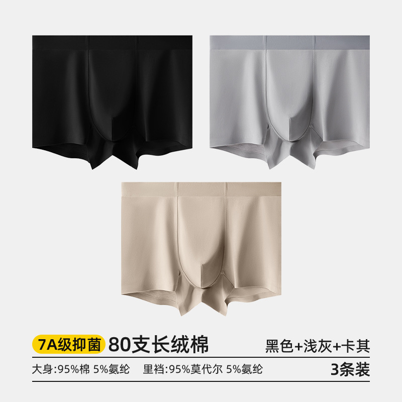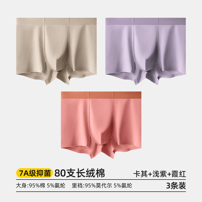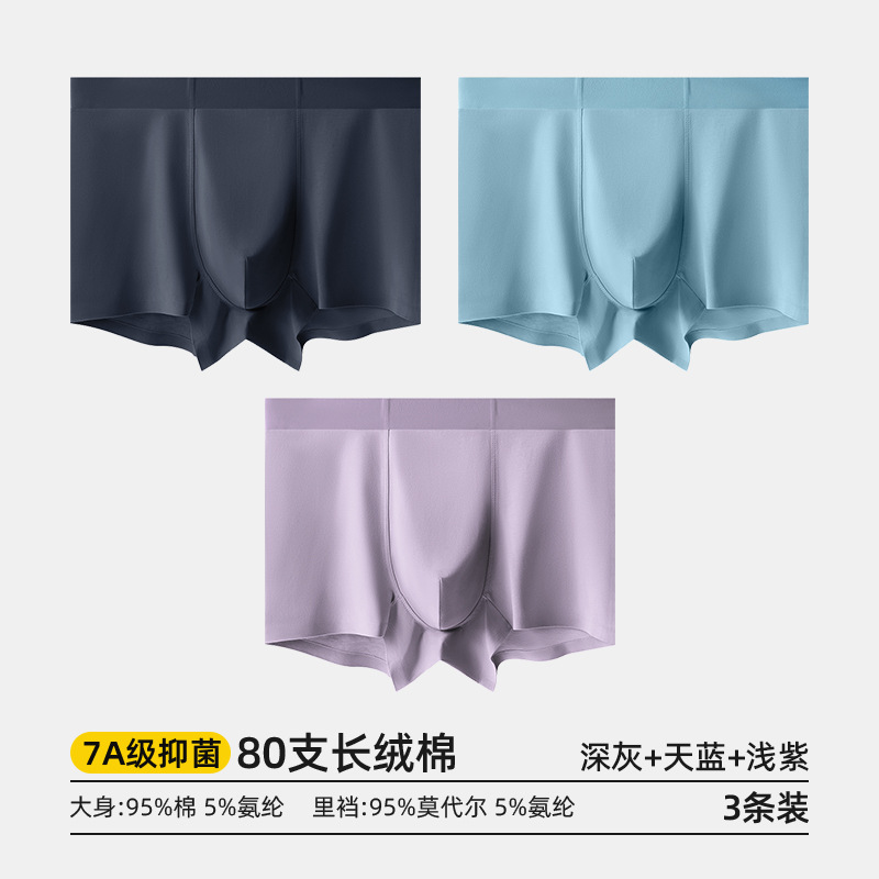 80수 긴섬유면 남성 속옷, 순면 여름용 사각팬티, 7A 항균 모달 남성 사각팬티