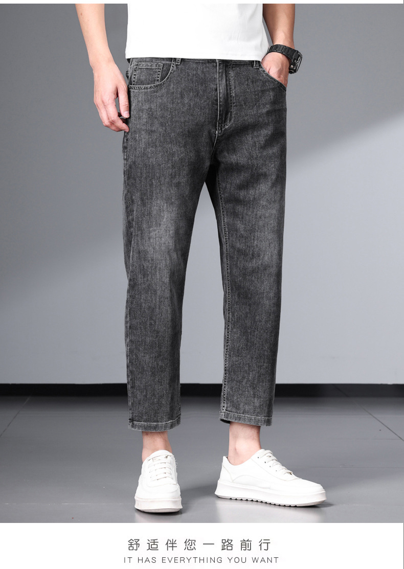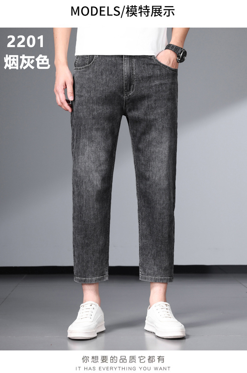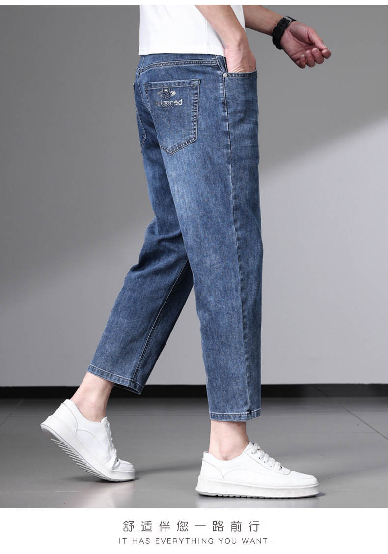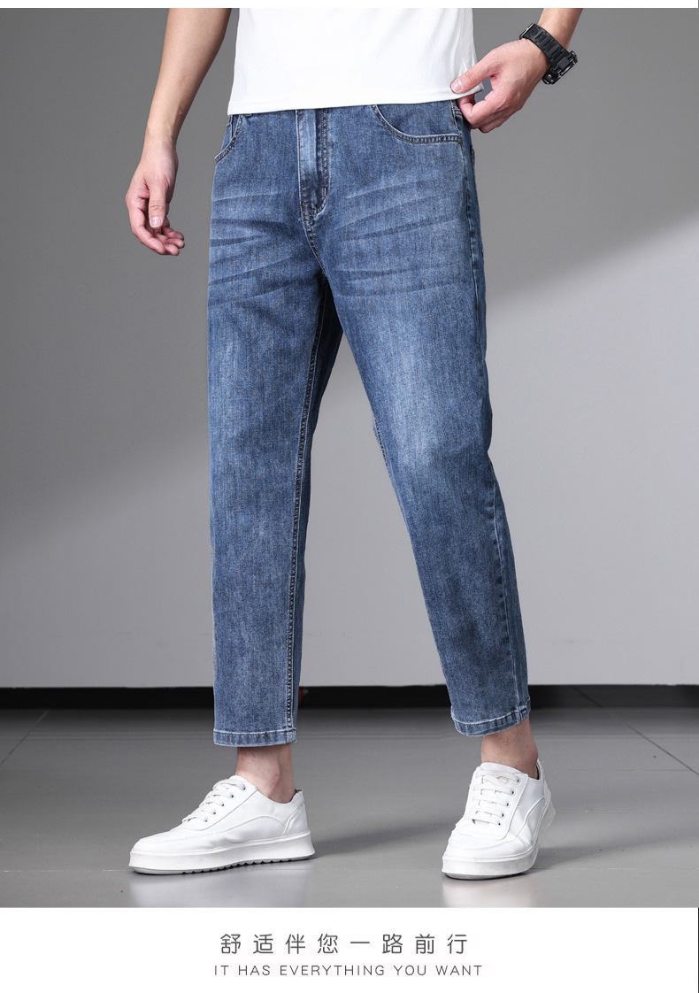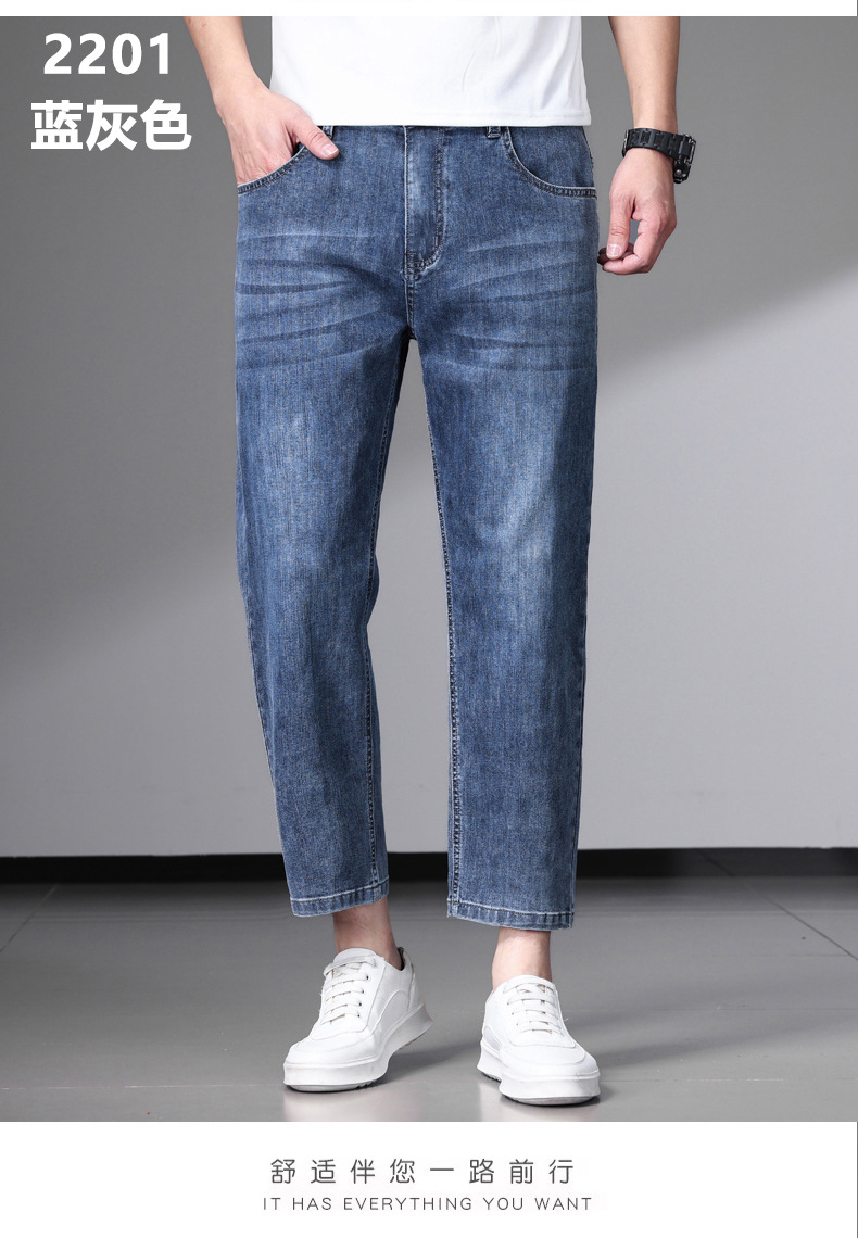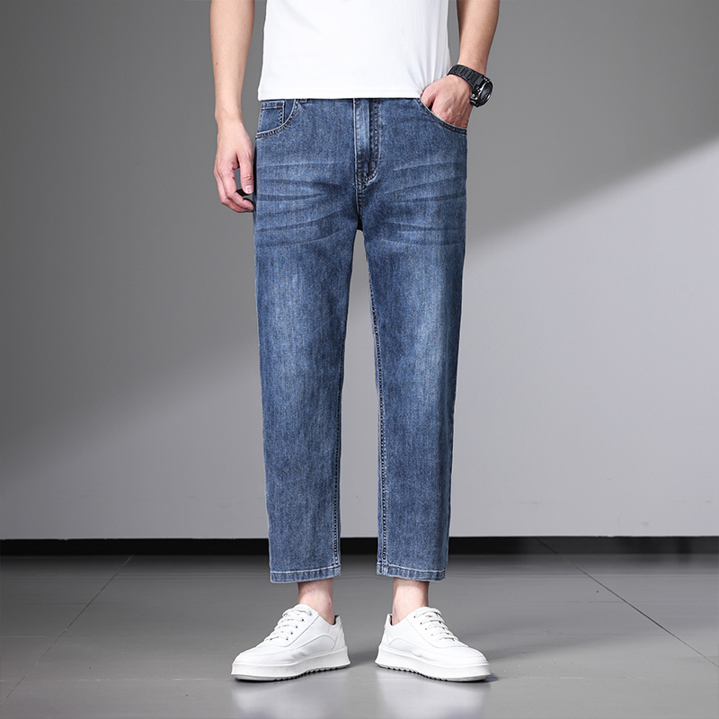 여름 초박형 아이스 실크 8 점 청바지 남자 여름 얇은 2024 새로운 느슨한 스트레이트 하이 엔드 크롭 바지스토어 가기