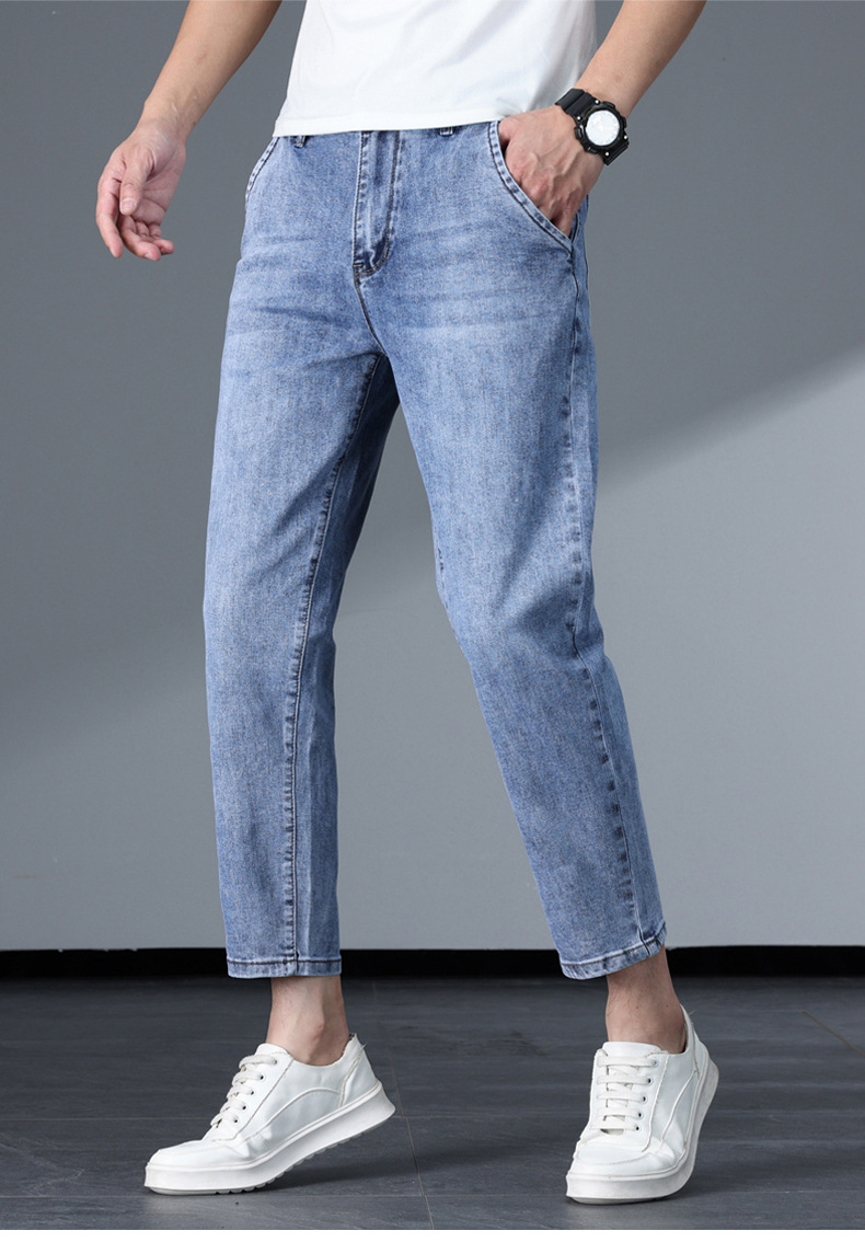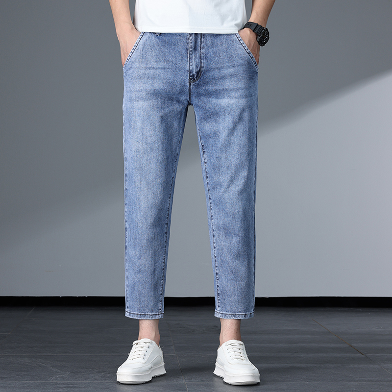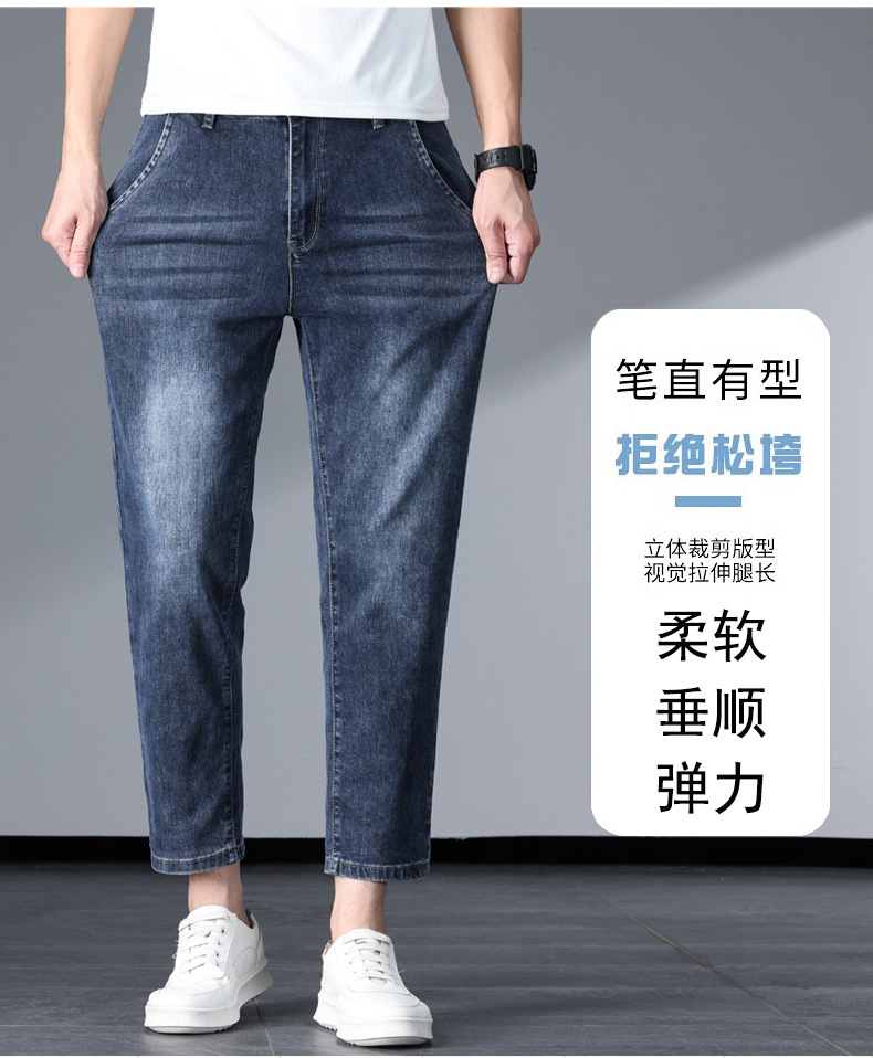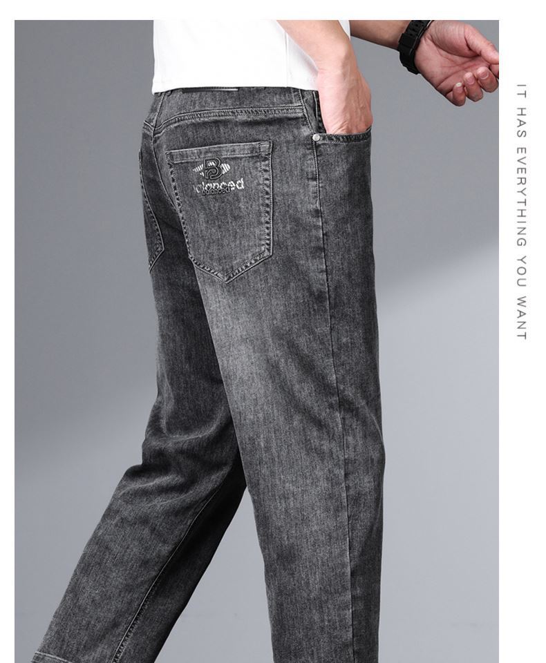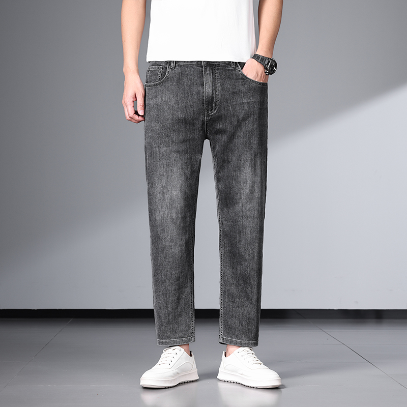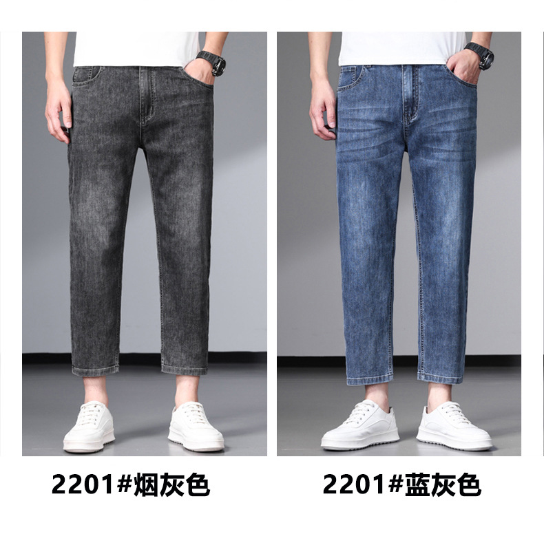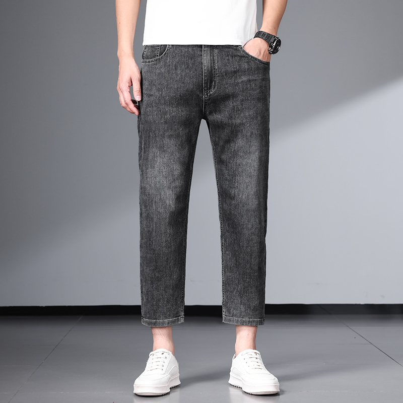여름 초박형 아이스 실크 8 점 청바지 남자 여름 얇은 2024 새로운 느슨한 스트레이트 하이 엔드 크롭 바지스토어 가기
