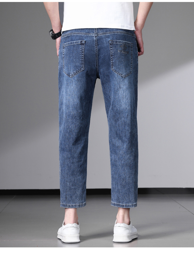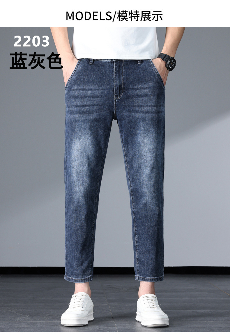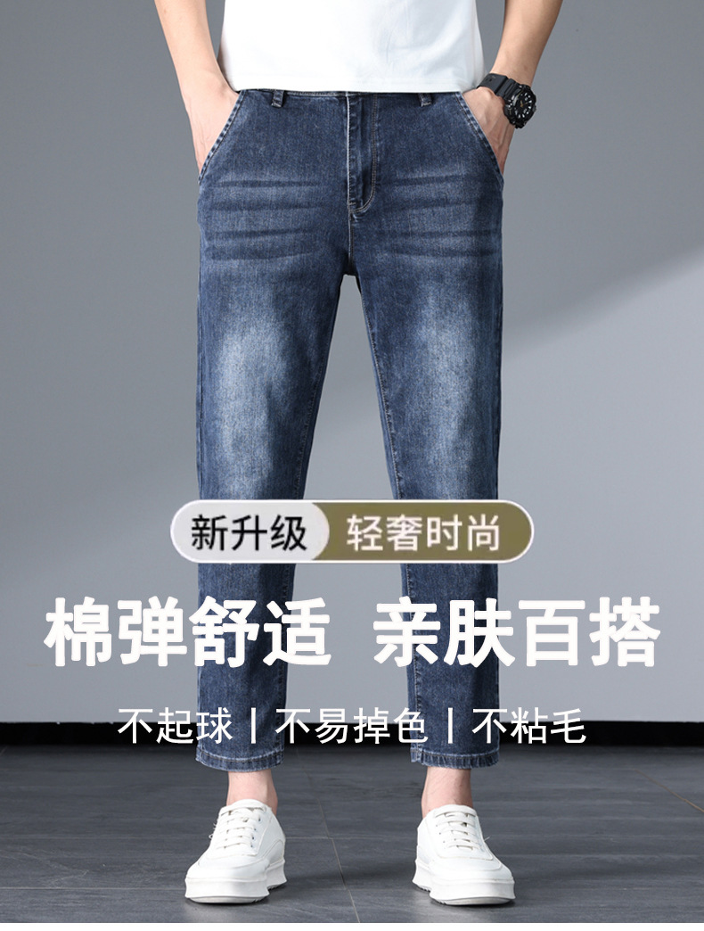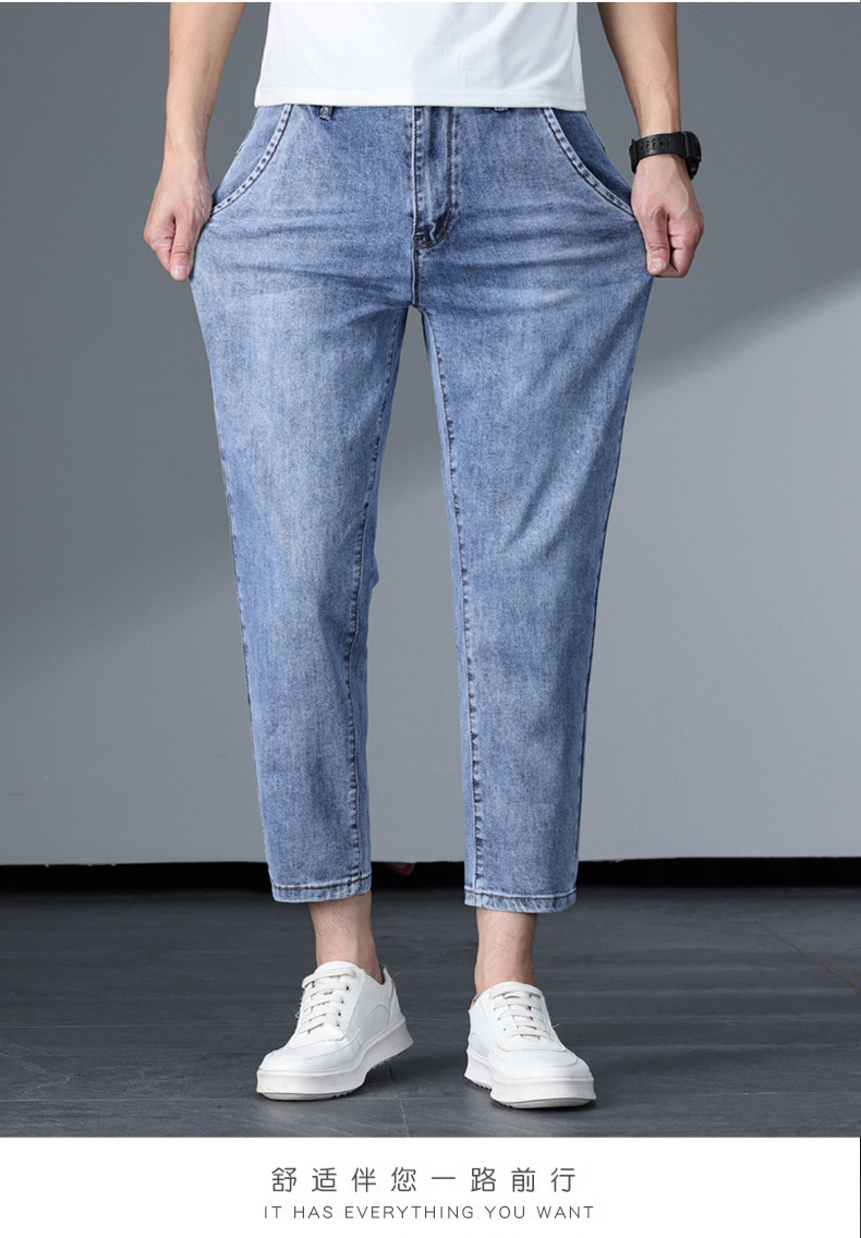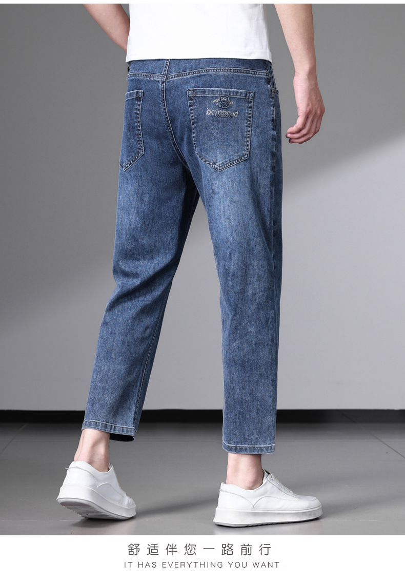 여름 초박형 아이스 실크 8 점 청바지 남자 여름 얇은 2024 새로운 느슨한 스트레이트 하이 엔드 크롭 바지스토어 가기