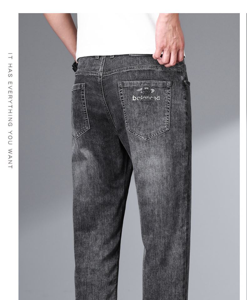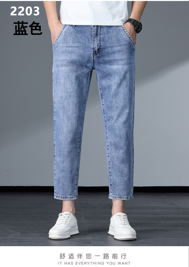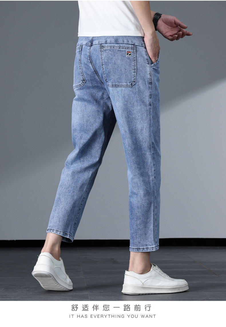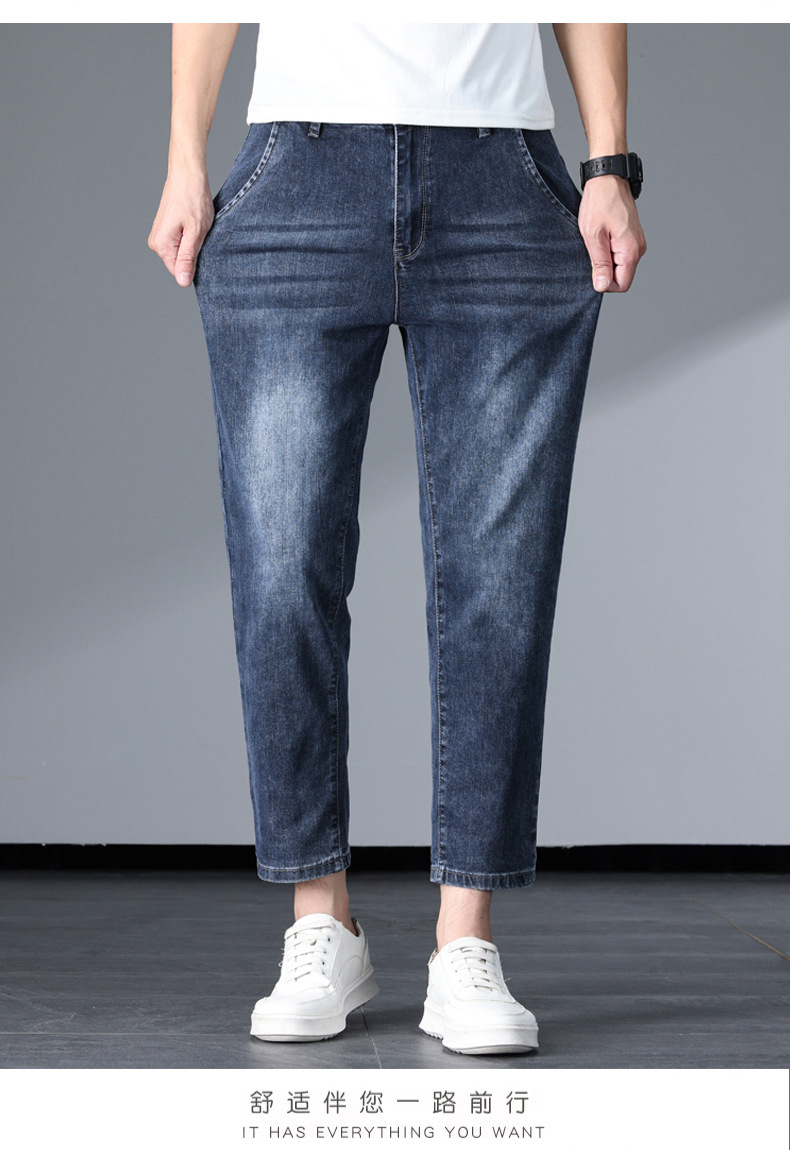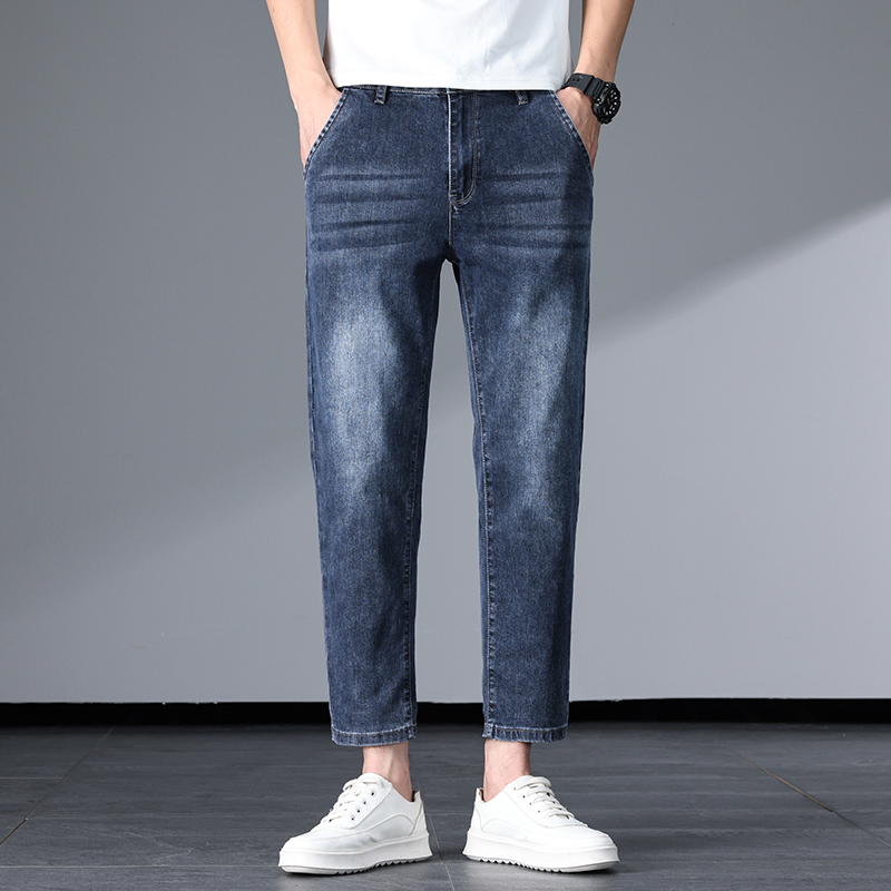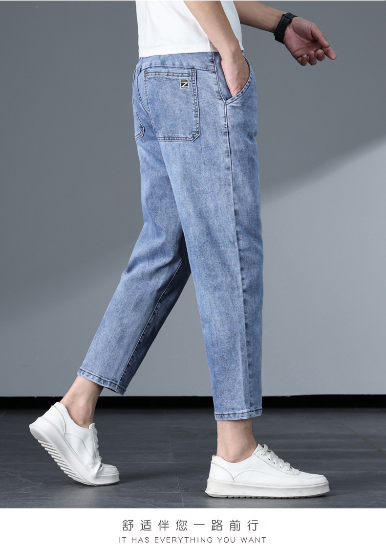 여름 초박형 아이스 실크 8 점 청바지 남자 여름 얇은 2024 새로운 느슨한 스트레이트 하이 엔드 크롭 바지스토어 가기