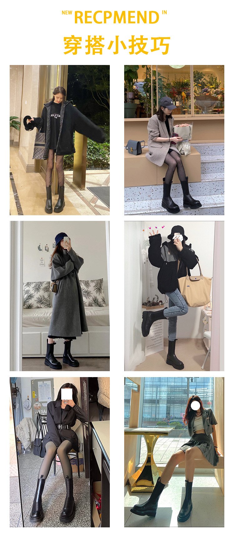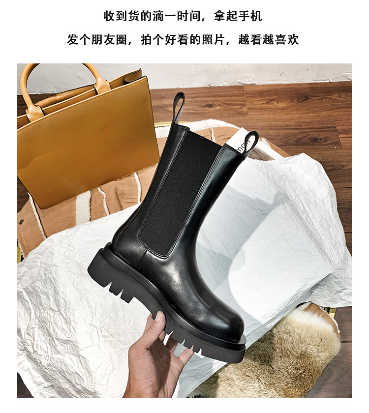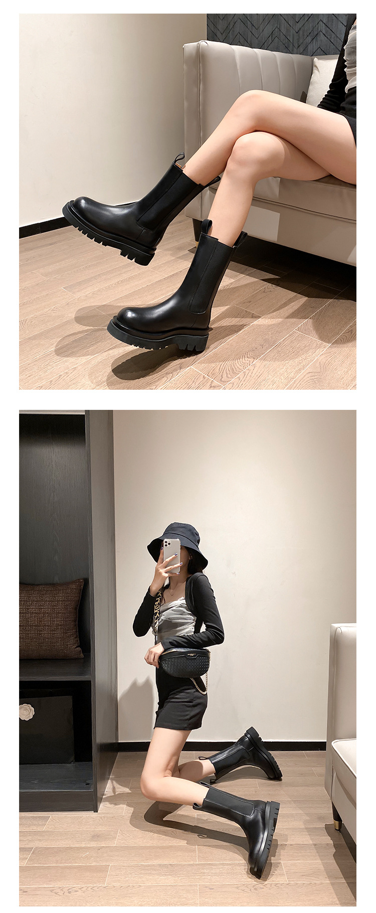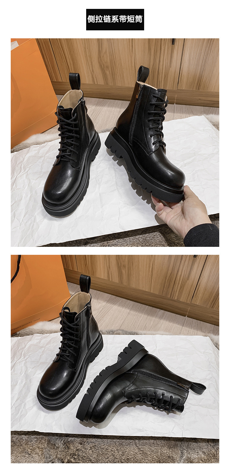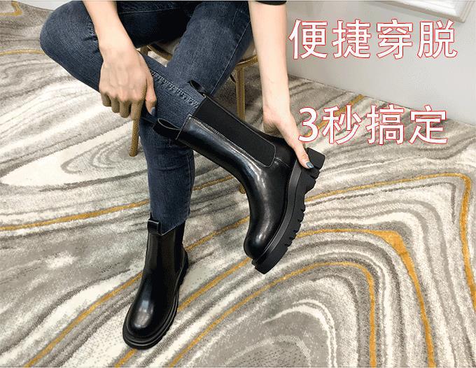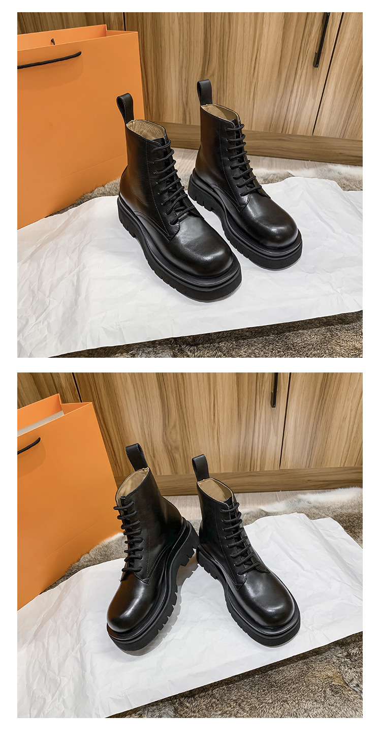 Full Cowhide ~ Genuine Leather Heightened Martins 부츠 여성용 영국 스타일 미드 실린더 두꺼운 싱글 담배 첼시 부츠 가을 짧은 부츠스토어 가기