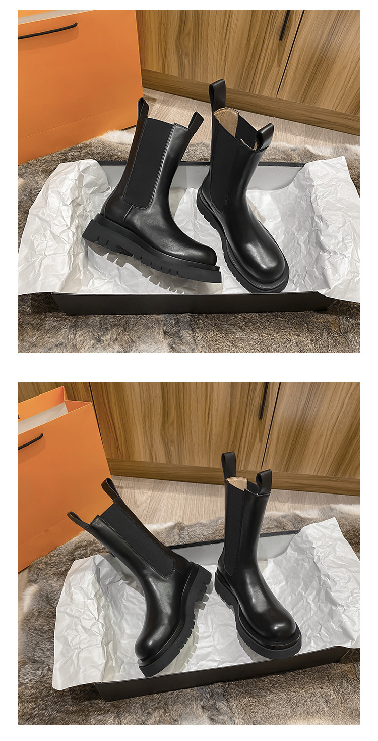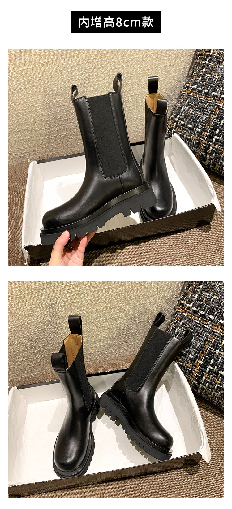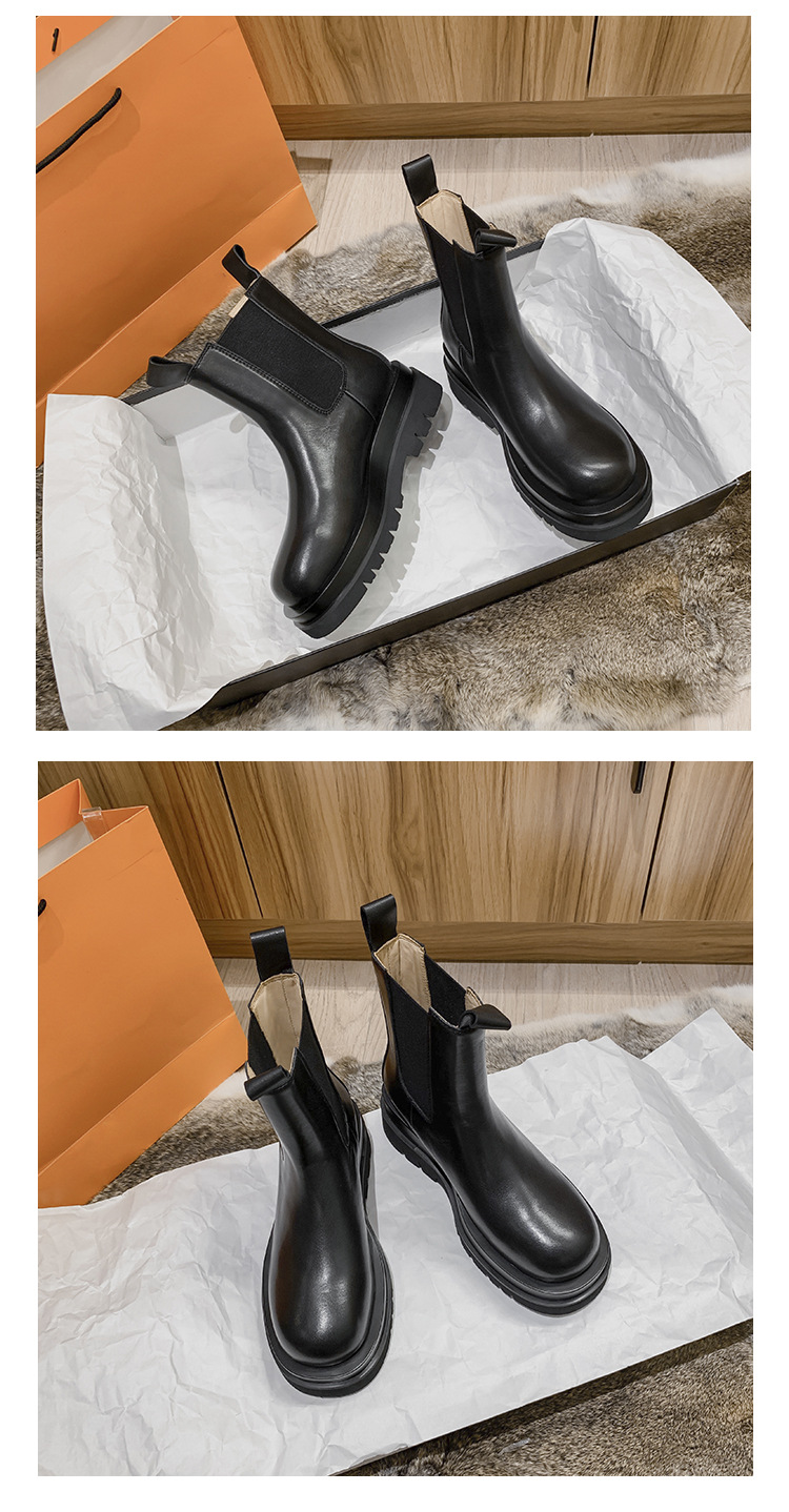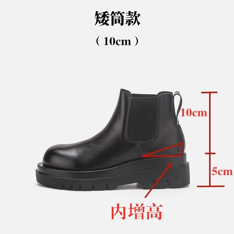 Full Cowhide ~ Genuine Leather Heightened Martins 부츠 여성용 영국 스타일 미드 실린더 두꺼운 싱글 담배 첼시 부츠 가을 짧은 부츠