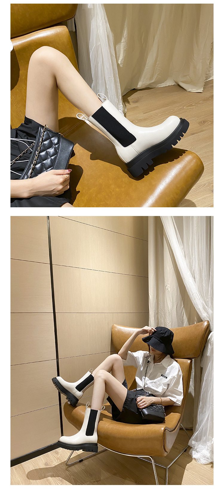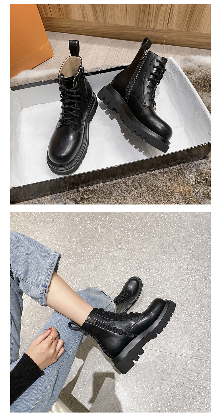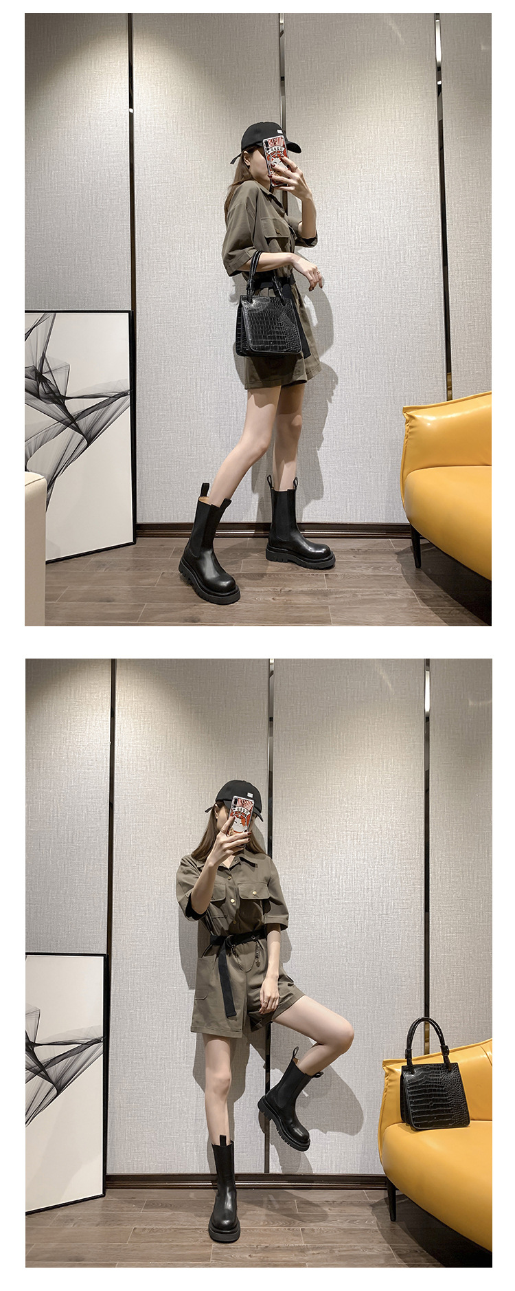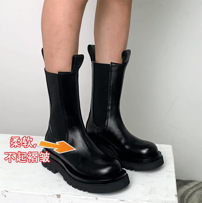Full Cowhide ~ Genuine Leather Heightened Martins 부츠 여성용 영국 스타일 미드 실린더 두꺼운 싱글 담배 첼시 부츠 가을 짧은 부츠