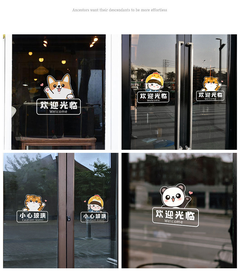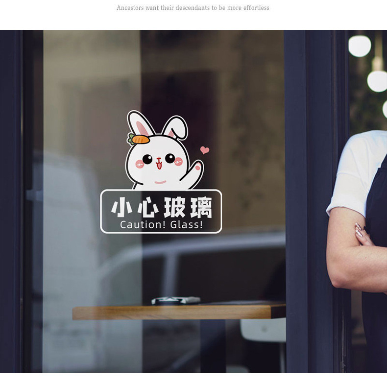 유리 만화 로고 충돌 방지 스티커 상점 창 쇼핑몰 유리 문 스티커 장식 정전기 스티커 팁 스티커에주의하십시오스토어 가기