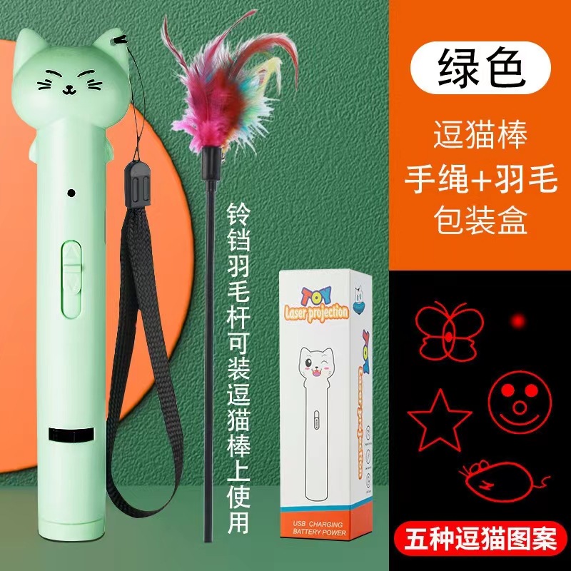• 녹색 재미있는 고양이 지팡이 깃털 종