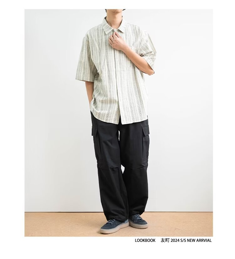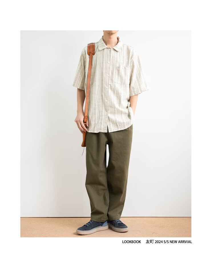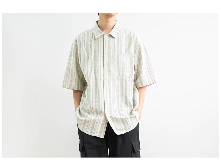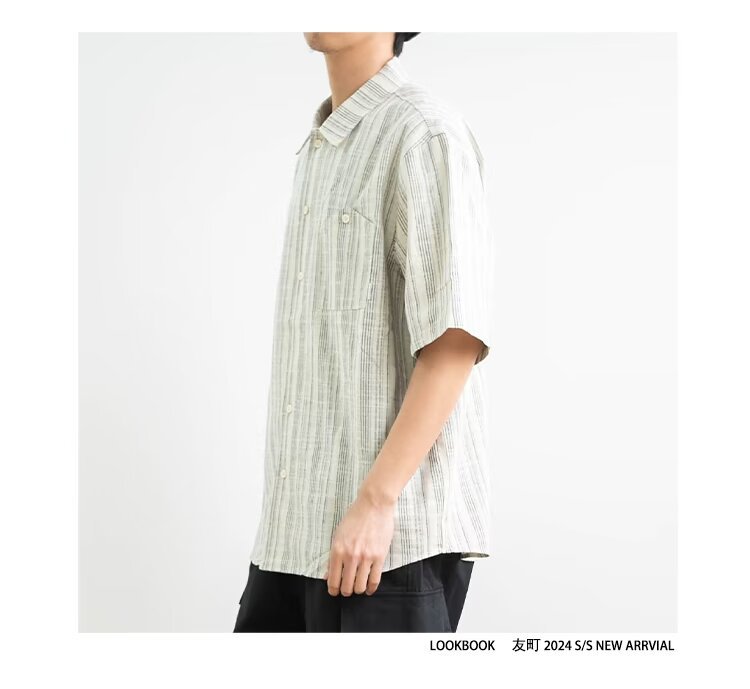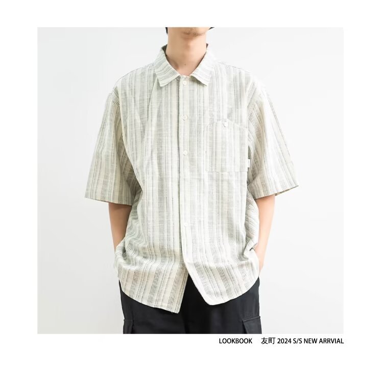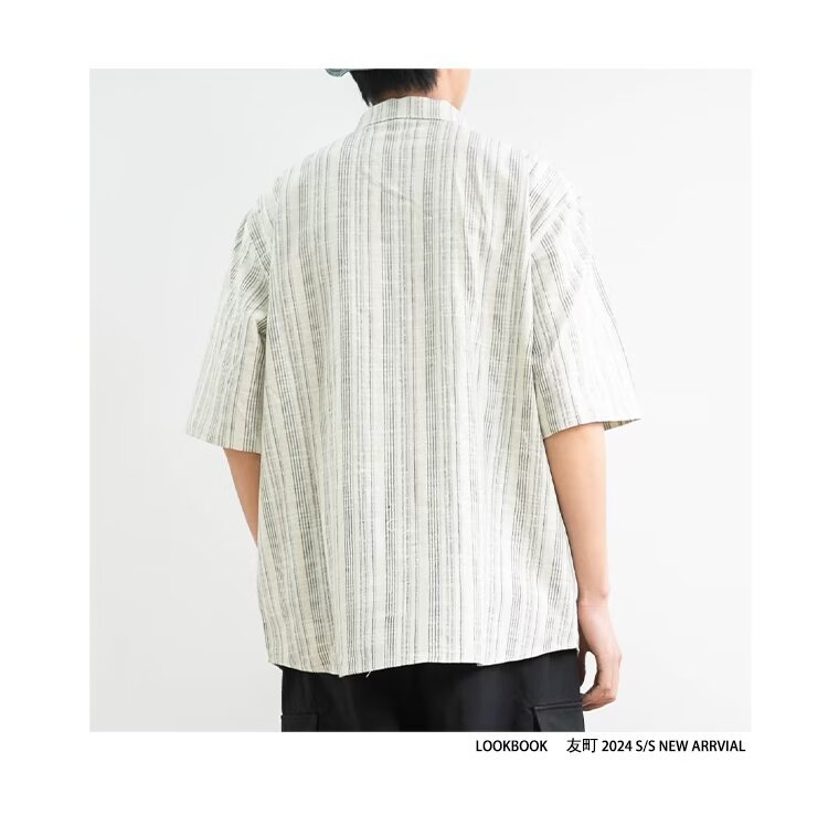 여름 텐셀 자카드 볶음 컬러 중국 스타일 캐주얼 셔츠 새로운 중국 스타일 반팔 팬 입 셔츠 남성용 코트 간단스토어 가기