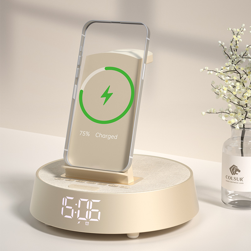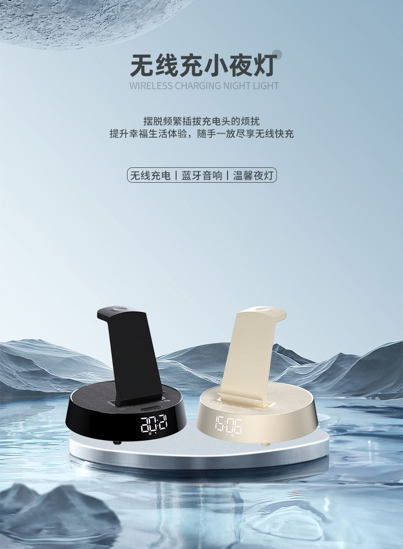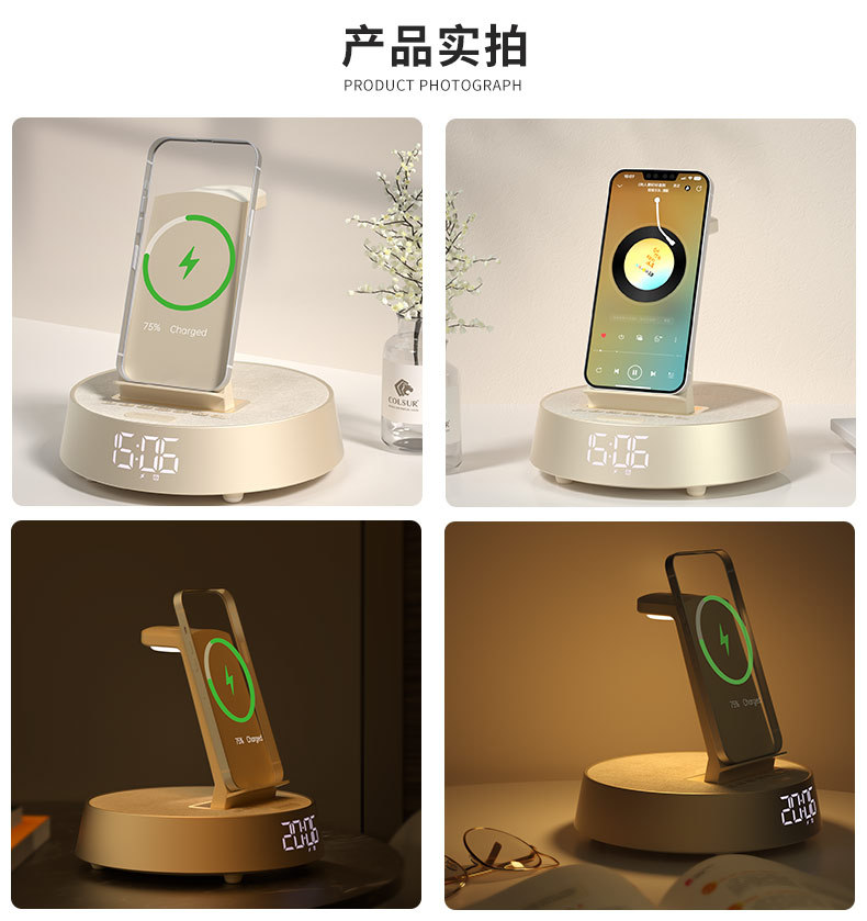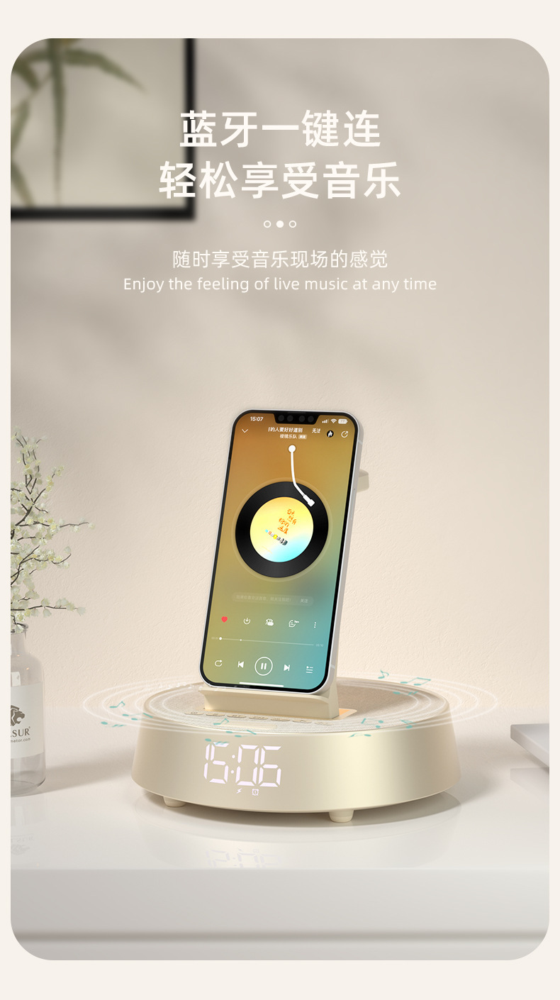 무선 충전 블루투스 스피커 시계 알람 시계 분위기 램프 음악 책상 램프 다기능 스마트 오디오 나이트 라이트 침대 옆