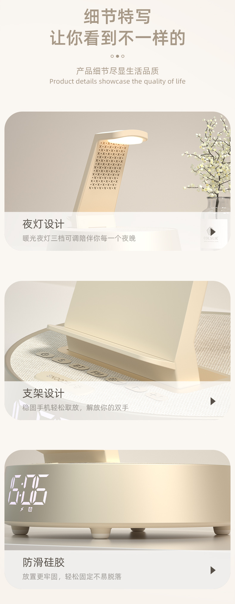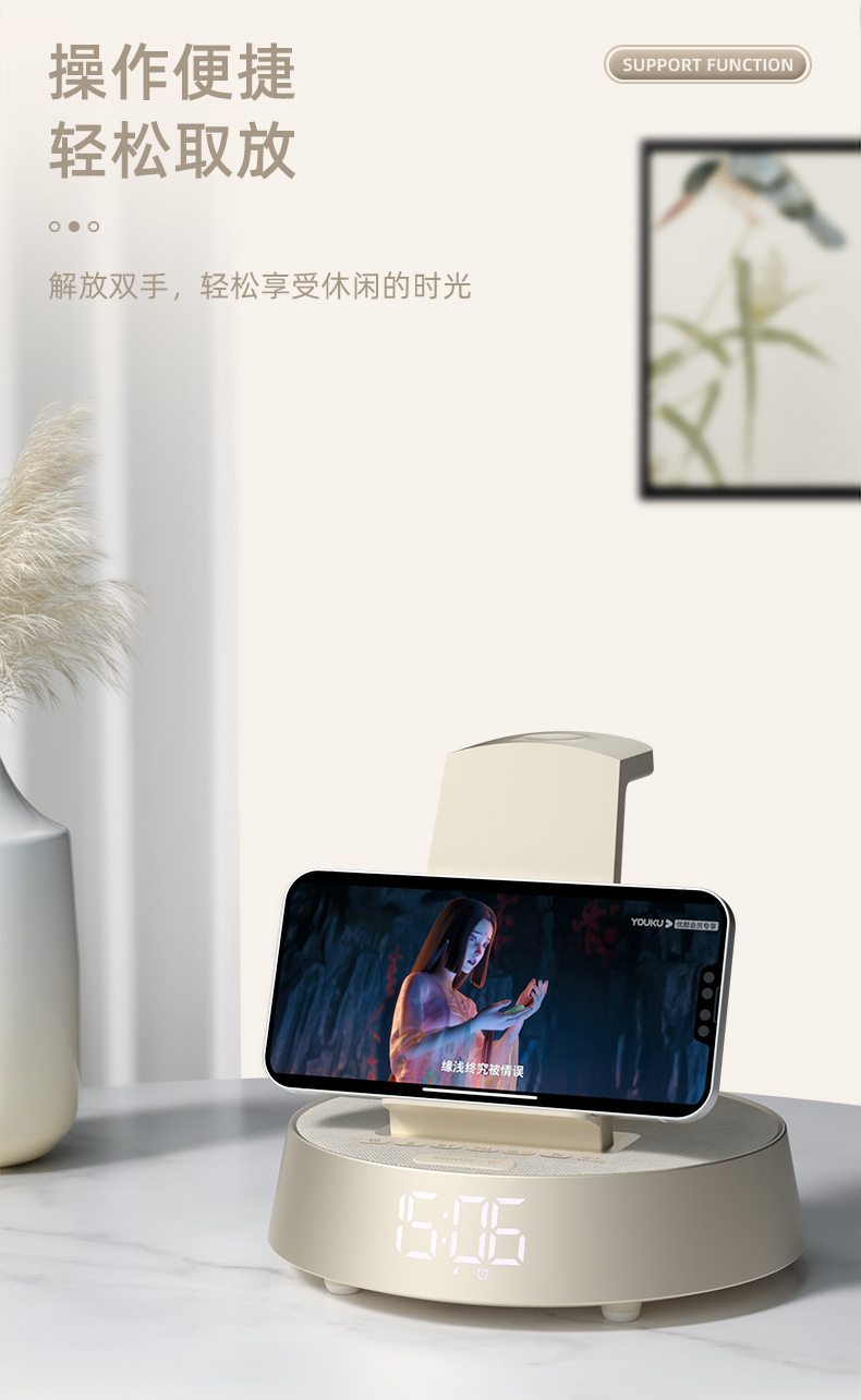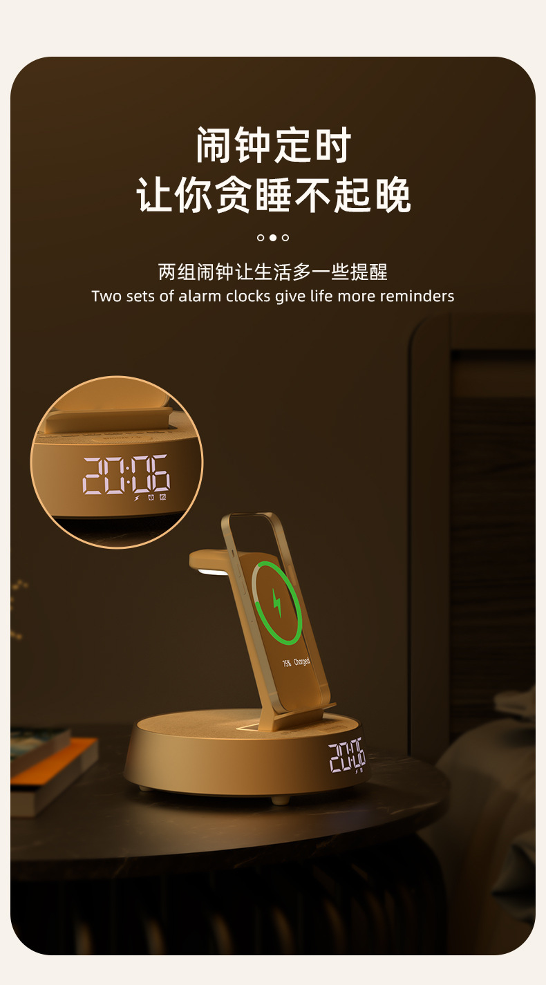 무선 충전 블루투스 스피커 시계 알람 시계 분위기 램프 음악 책상 램프 다기능 스마트 오디오 나이트 라이트 침대 옆